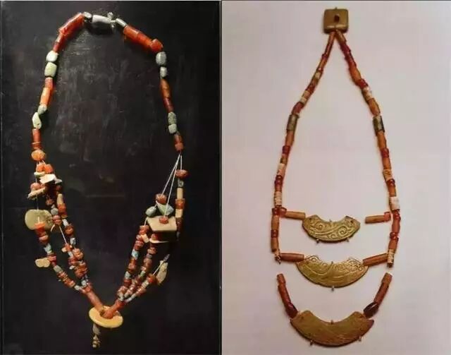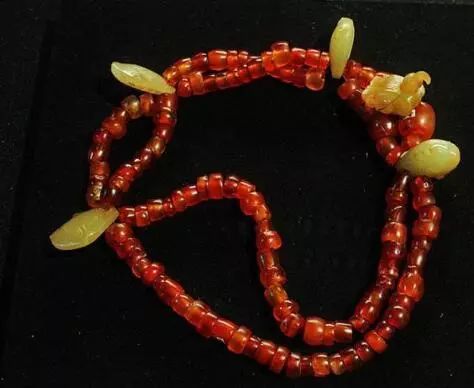 西周时期,中原各诸侯国,开始流行用红玛瑙珠搭配玉件作为组配,根据地位等级的不同,从颈部一直垂到膝下。这种组配的出现,与《周礼》息息相关,环佩玎珰,在当时极为流行,出土文物也较多。