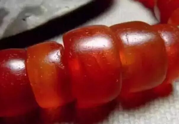 出土后的西玛珠,拿在手中,我们可以感受到千年不变的酒红色,光泽内敛,稍微盘玩,美不胜收,这对我们鉴定新老,非常重要,要准确找到真品的感觉,接下来,我们学习西玛的鉴定。