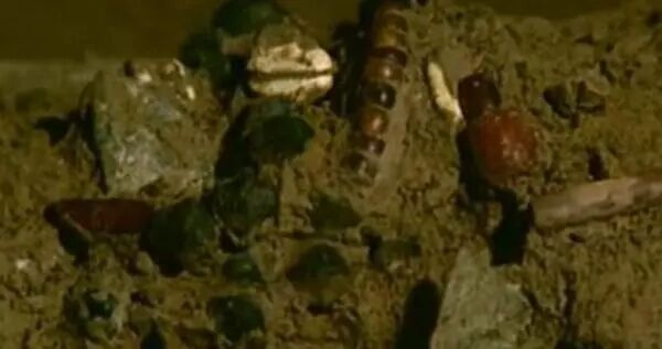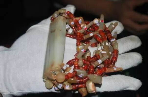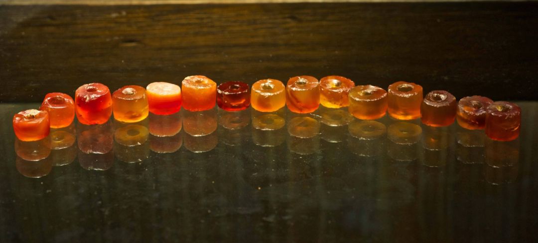 这些玛瑙珠,常常与墓葬中的泥土亲密接触,在重见天日的一瞬间,它们的排列顺序,仍旧是按照下葬时候的样子,除非受到环境扰动,这对我们复原组配十分重要。了解墓葬环境,对我们进行珠子的鉴定,十分重要。
