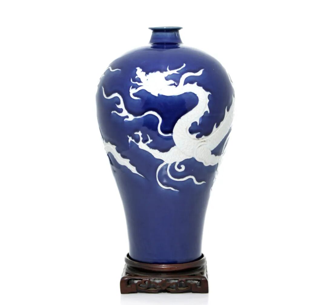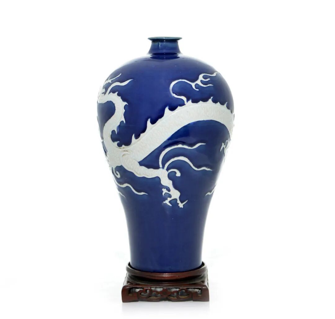 Lot 19287 蓝釉留白龙纹梅瓶