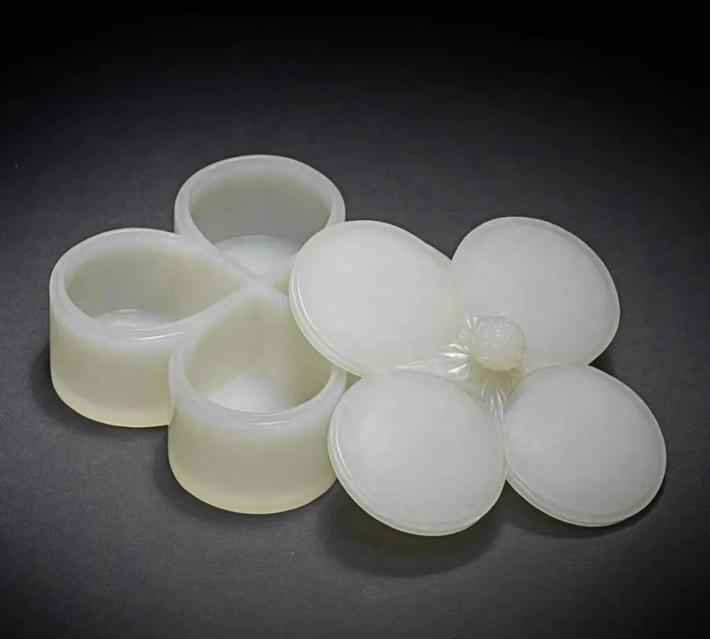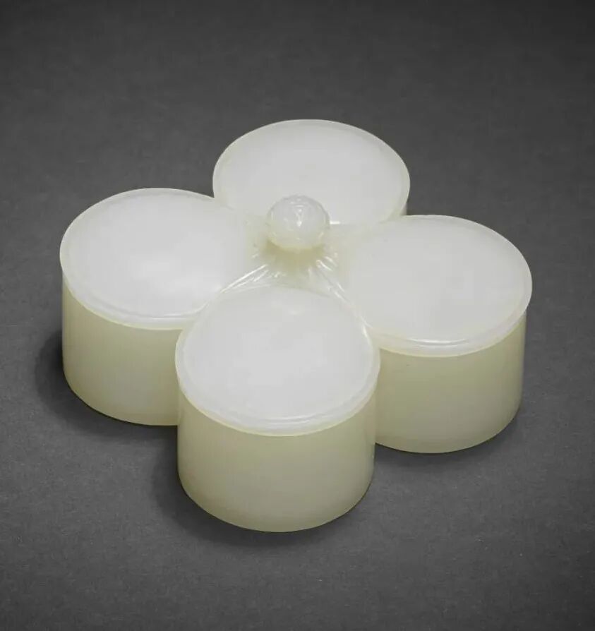 十八世纪 痕都斯坦式白玉雕花瓣形分格盖盒