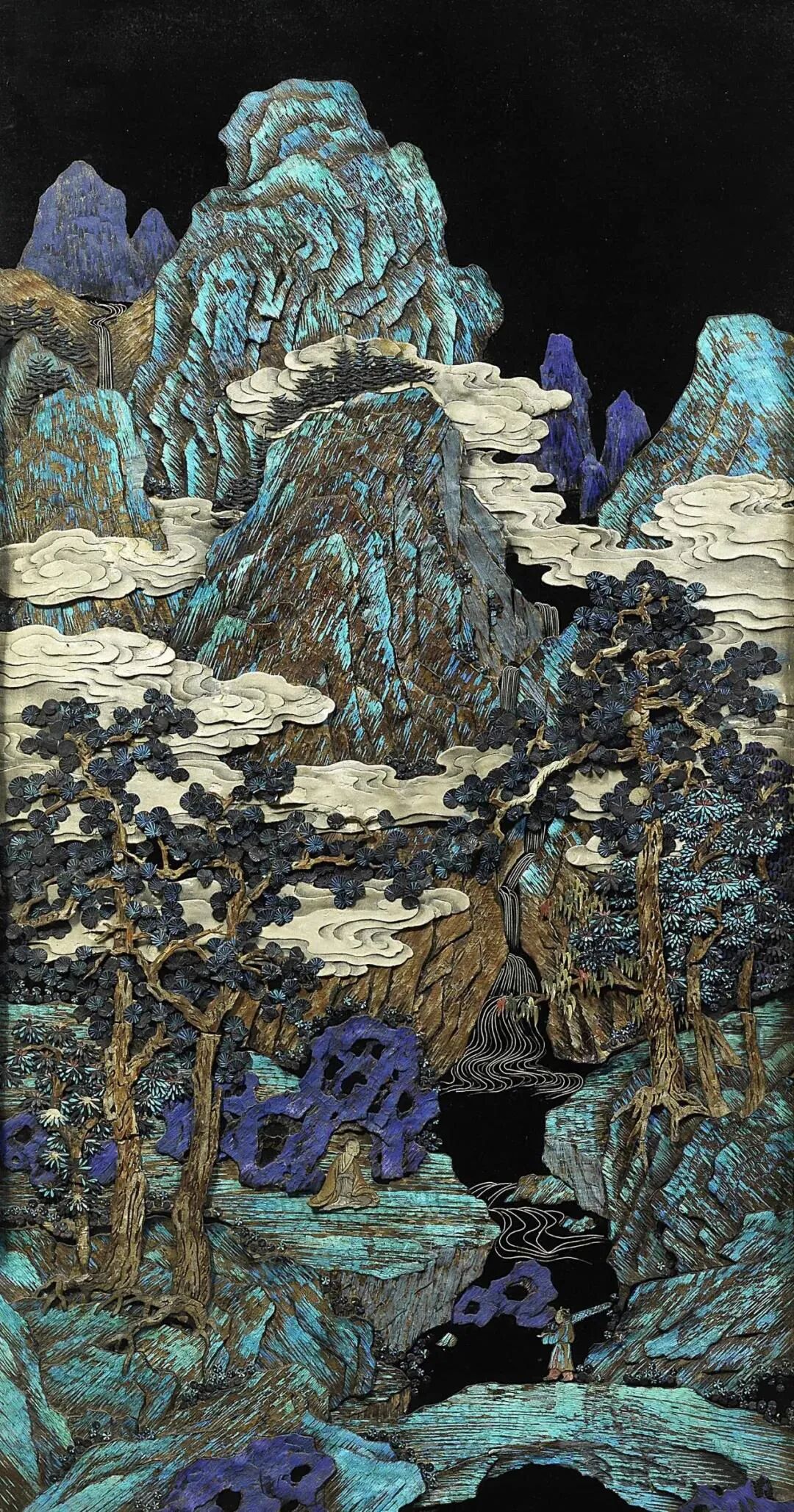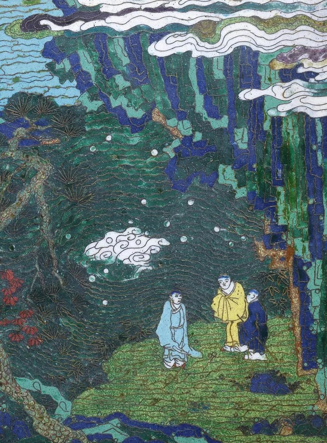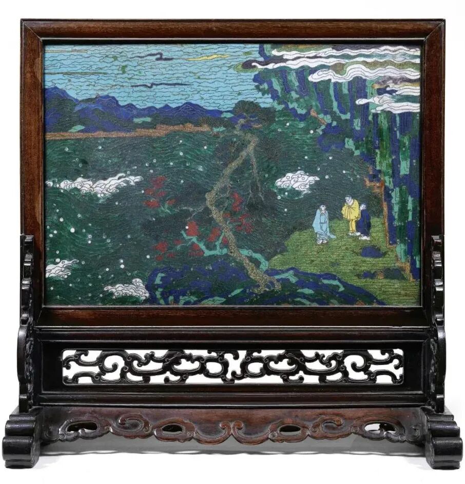 十七世纪上半叶 铜胎掐丝珐珐高士图插屏(7-12万)