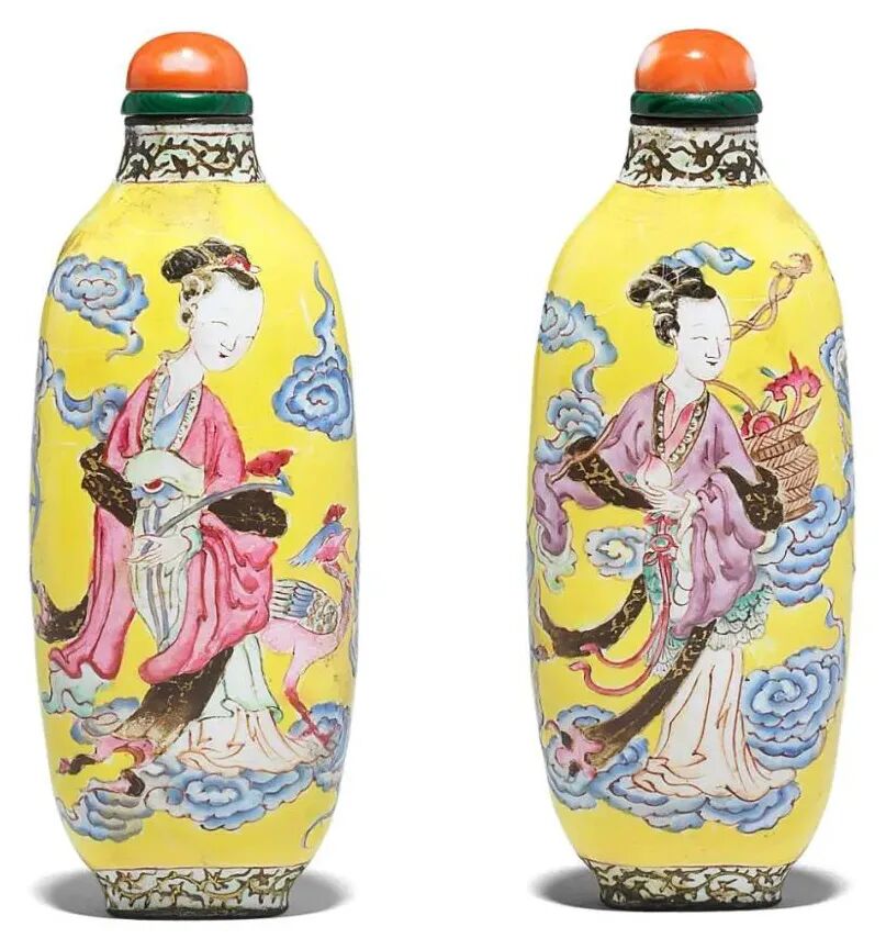 清雍正 铜胎画珐琅黄地人物纹鼻烟壶(2-3万)