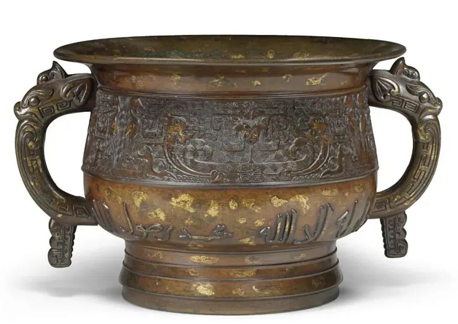 十七/十八世纪 洒金仿古夔龙纹阿拉伯文簋(1.5-2万)