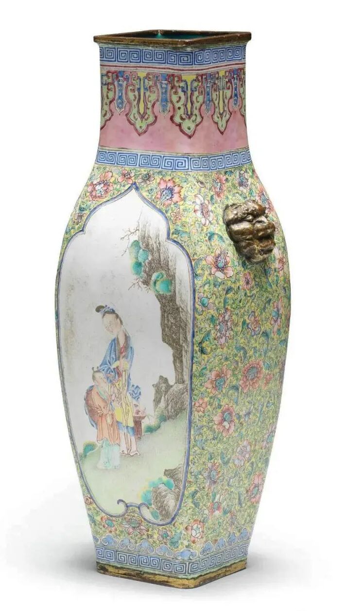 清乾隆 铜胎画珐琅开光仕女图长方形瓶(3-5万)