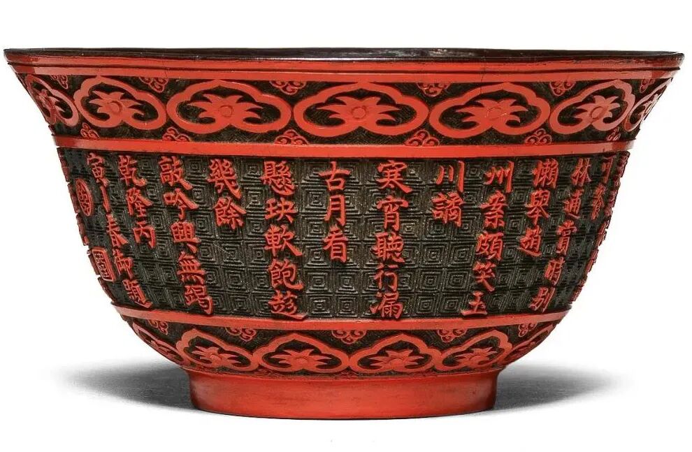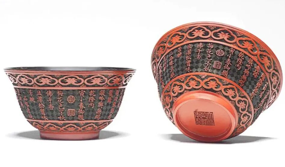 清乾隆 御制剔红御题诗三清茶碗一对(10-15万)