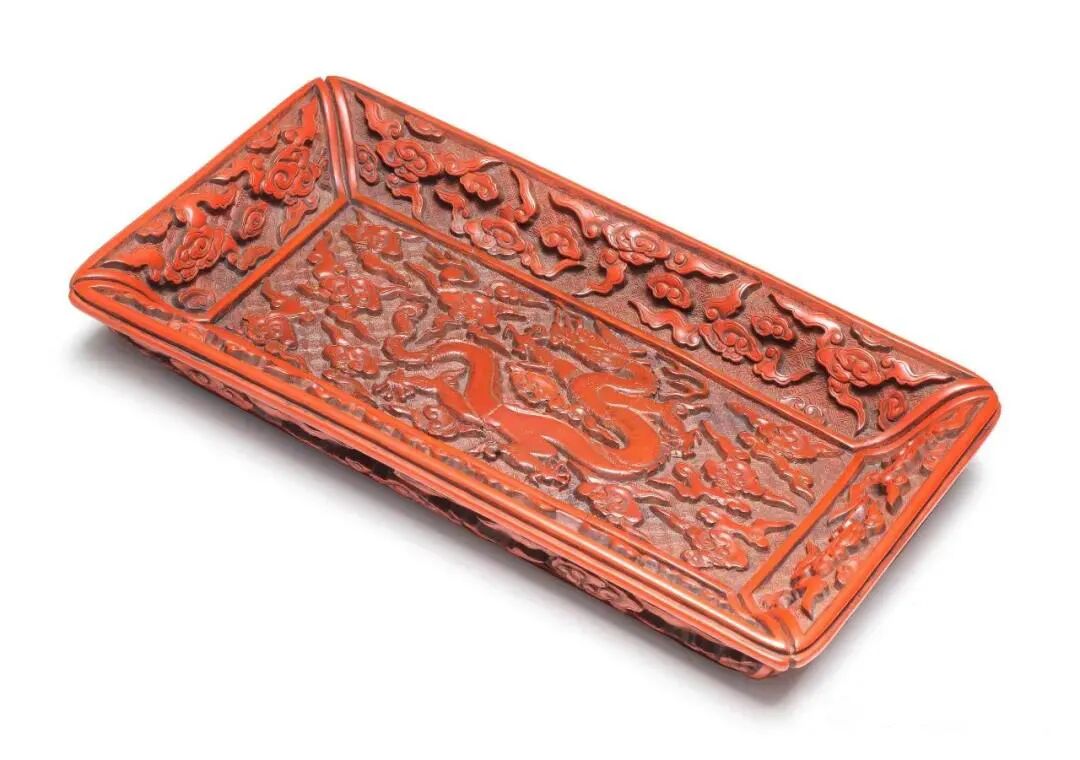 十六/十七世纪 剔红云龙纹长方形盘(2-3万)