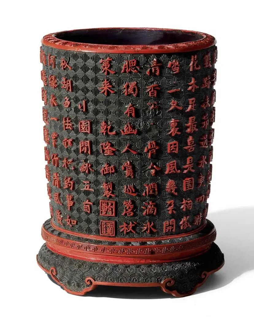 清乾隆 御制剔红「小园闲咏五首」御题诗笔筒(12-15万)