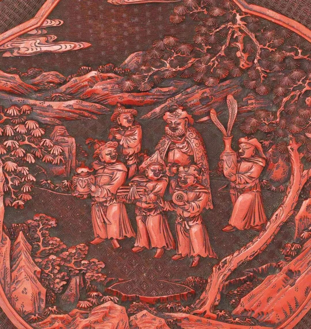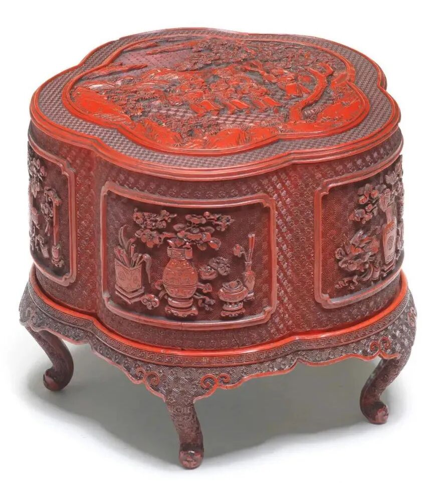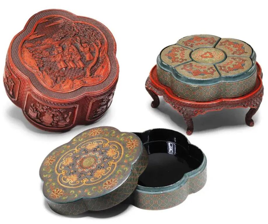 清乾隆 剔红胡人进宝梅花式套盒(6-8万)