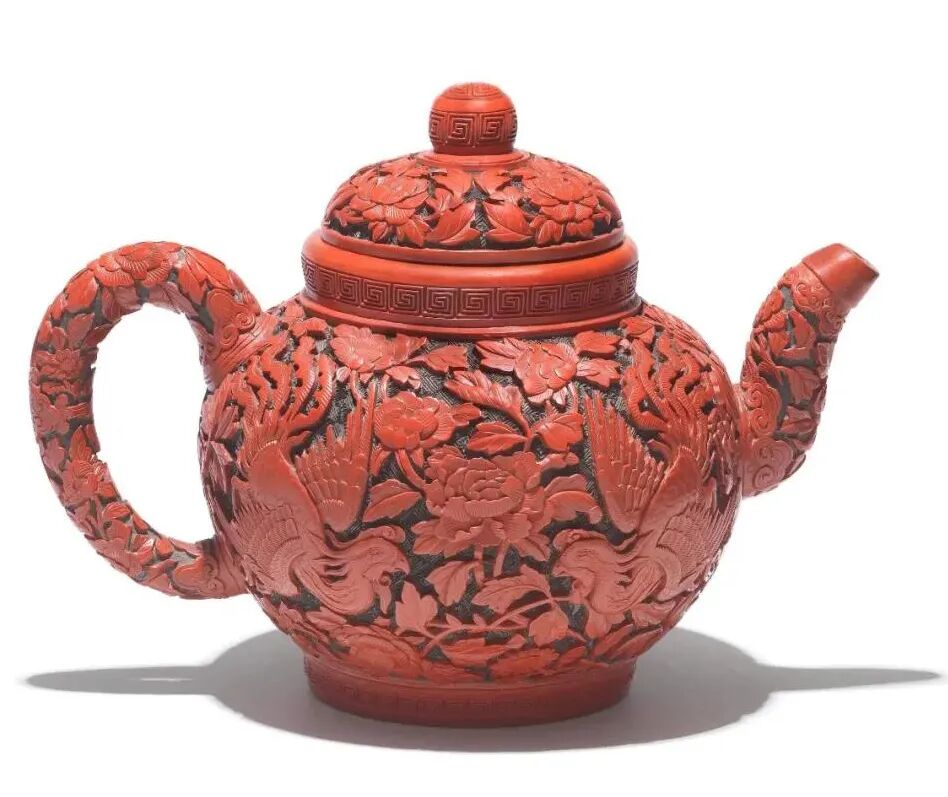 清乾隆 御制紫砂胎剔红凤穿牡丹纹壶(7-12万)