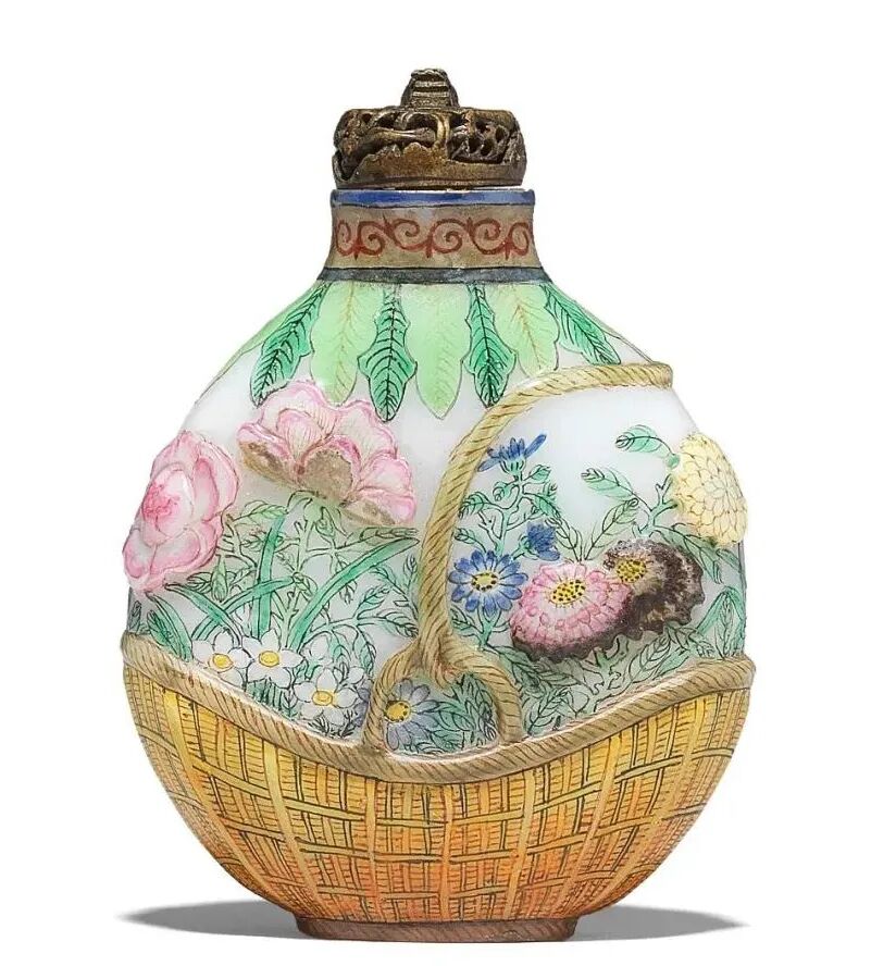 约1775-1799年 料胎画珐琅「花篮式」鼻烟壶(1.5-2万)