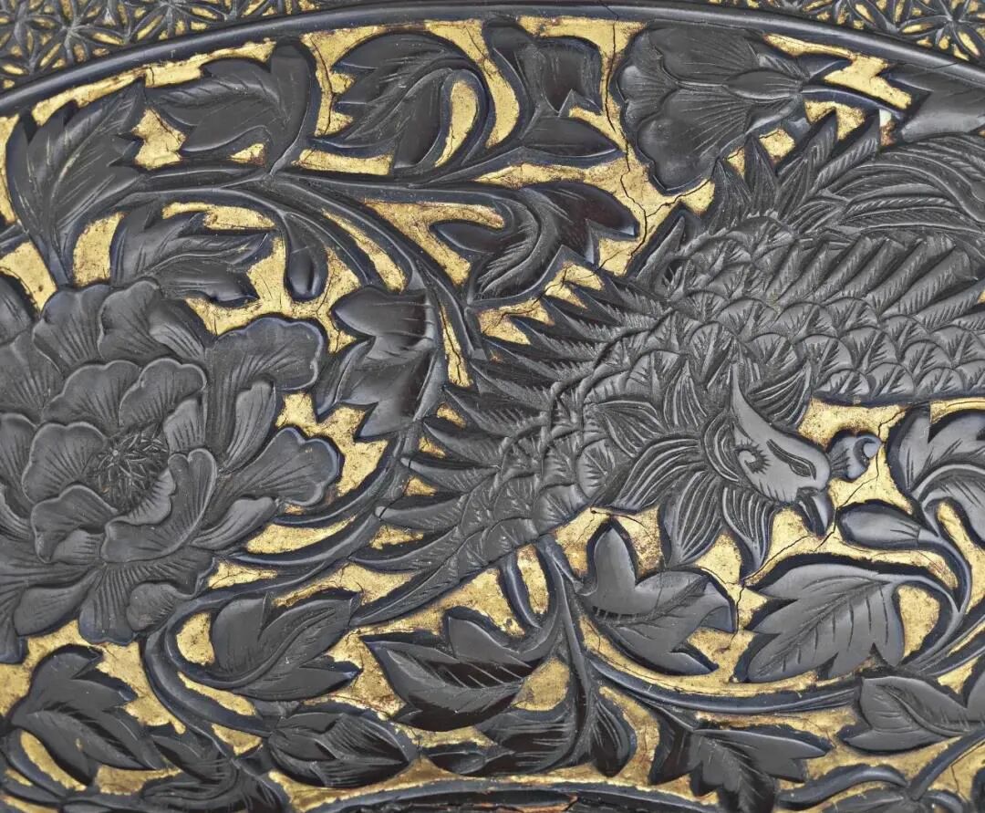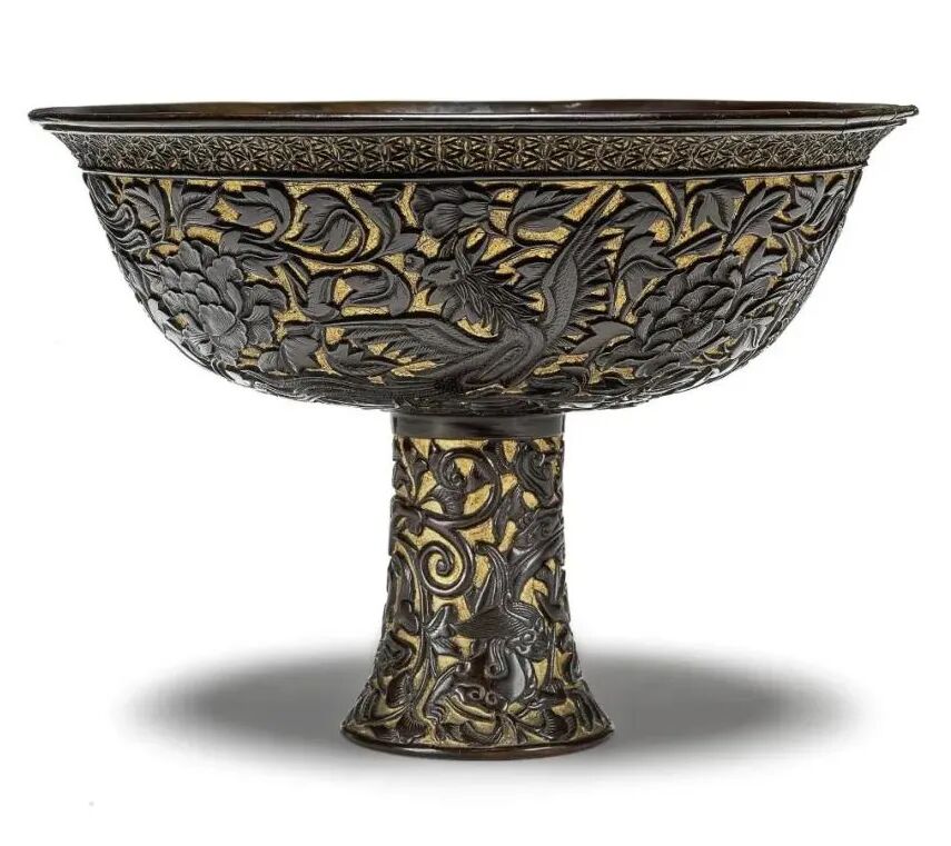 十五/十六世纪 剔黑金彩龙凤呈祥高足碗(3-5万)