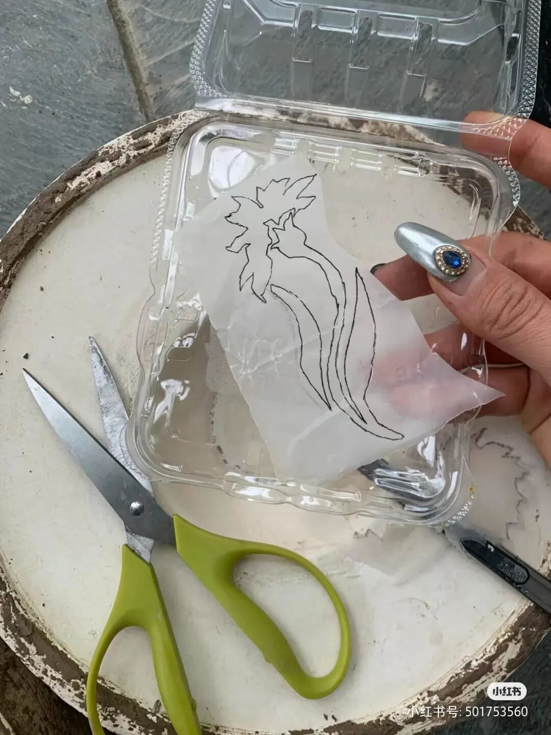 用装蓝莓的塑料盒来进行陶瓷创作的“裁板”步骤