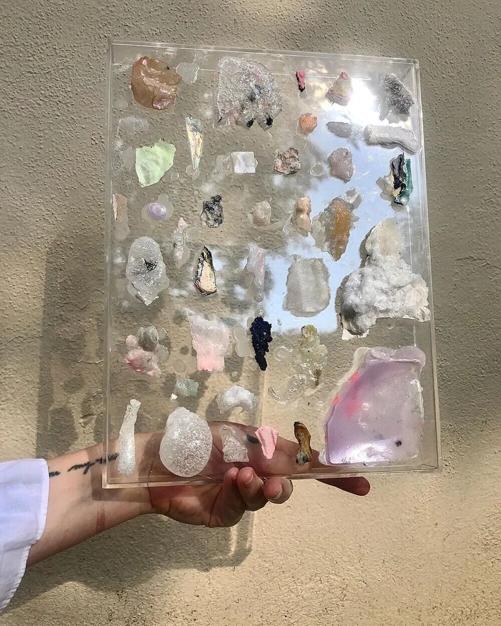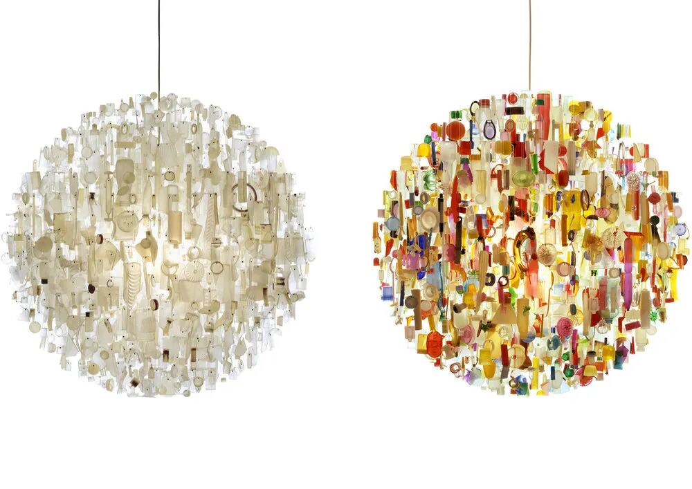 美国艺术家Kim Markel善用回收塑料、大理石粉尘再创造出糖果色系的、质感通透的产品。