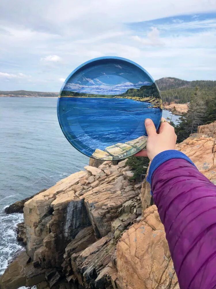 “水獭悬崖飞盘”,压克力飞盘,2019年 地点:缅因州阿卡迪亚国家公园(瓦巴纳基联邦土地)