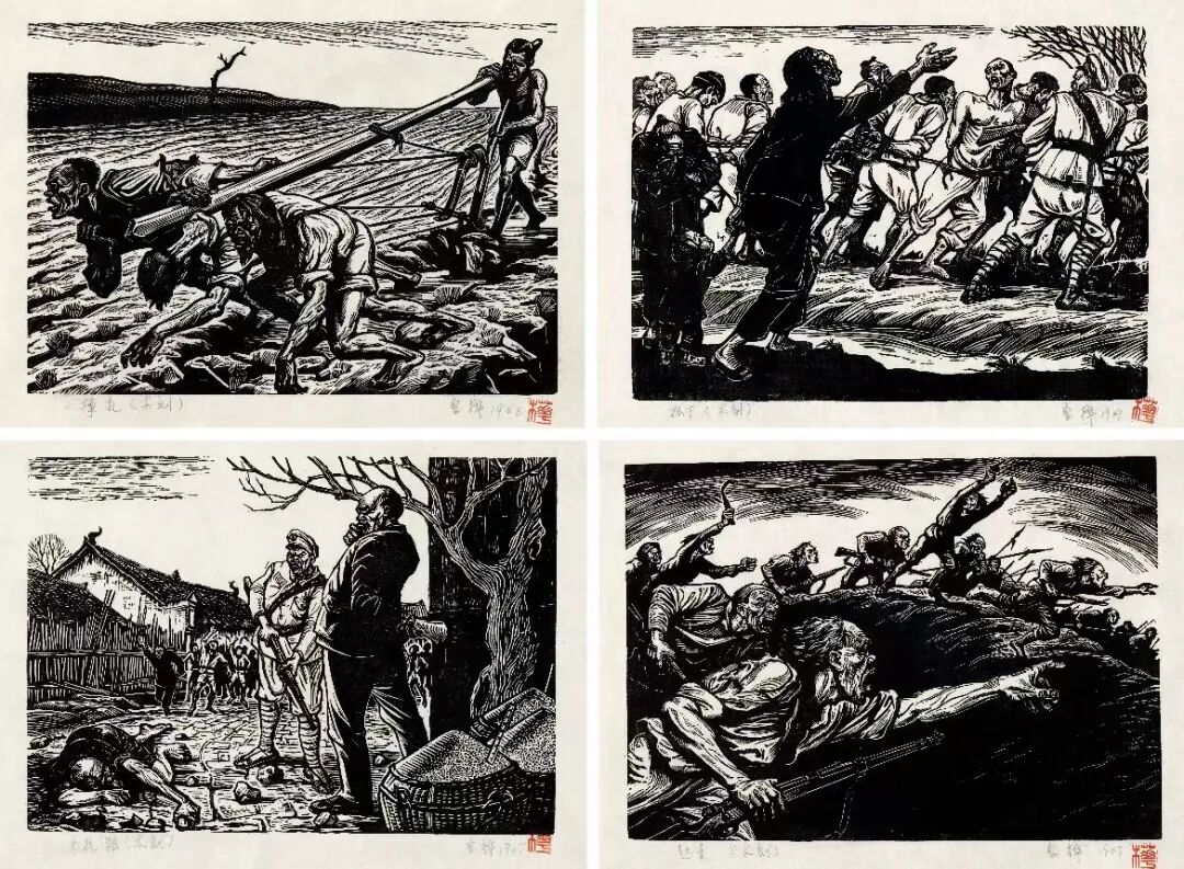 李桦,怒潮·组画,19.5×27.3cm×4,1947年