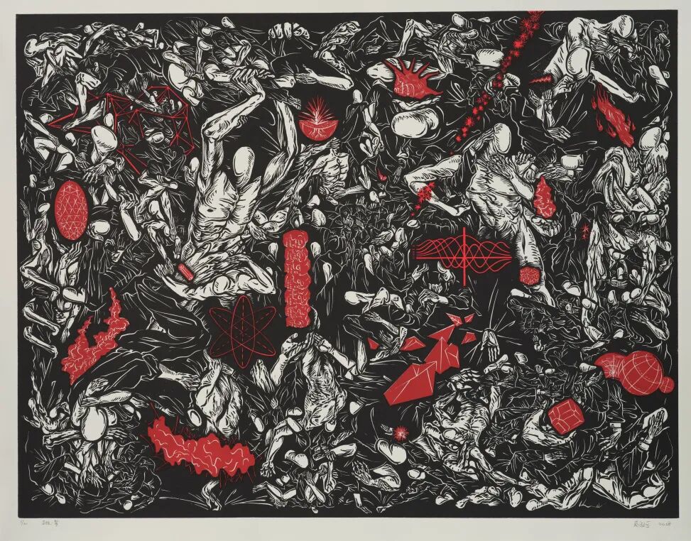 然而中国版画因其时代语言强烈而始终处于波动中,以至于当它失去其核心价值“宣传性”后,再难被推至幕前。1979年,随着“星星美展”的一声枪响,迎来了属于中国的当代艺术,西方思潮再次席卷中国,彼时的中国当代版画在体量、表现形式上既没有行为和装置的掷地有声,亦无油画雕塑的大众认可度,在众多高光时刻中仍旧无法脱颖而出。