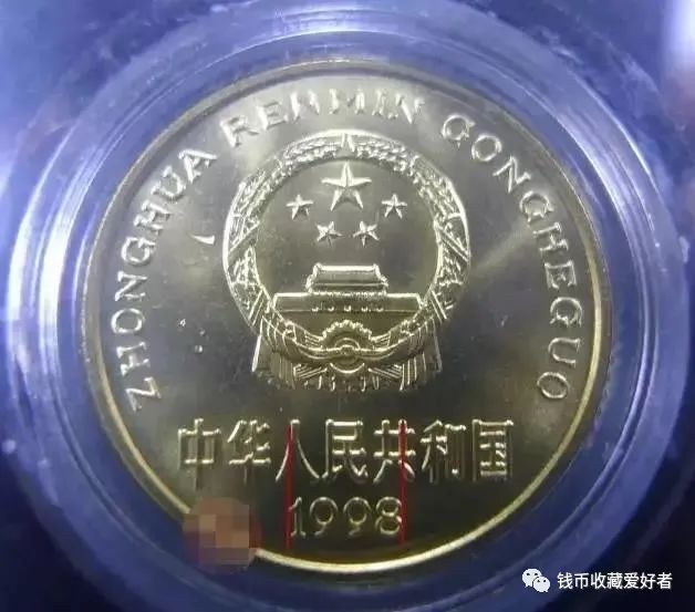 这枚“1993年”的梅花五角是后来改刻的,它的真身是一枚1998年的梅花五角。最近市场上出现了不少改刻的1993梅花,它们大多是流通品,骗子们还会故意把币弄脏弄黑,如果不仔细检查,很容易上当。