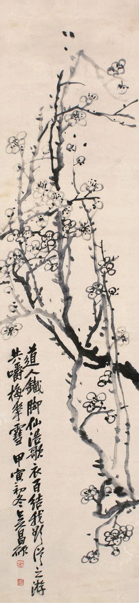 题识:道人铁脚仙,浩歌衣百结。我欲从之游,共嚼梅花雪。甲寅初冬,吴昌硕。