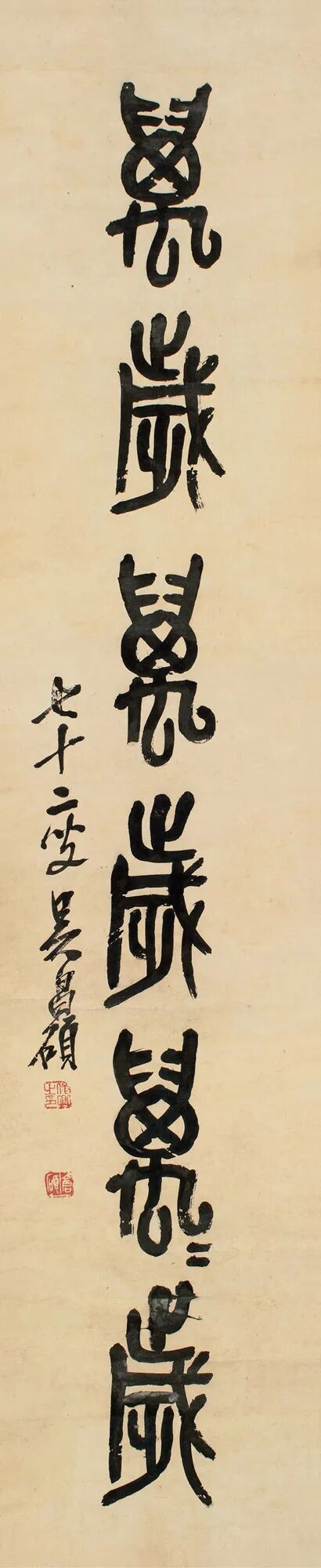 LOT 121 吴昌硕(1844~1927) 篆书“万岁万岁万万岁”