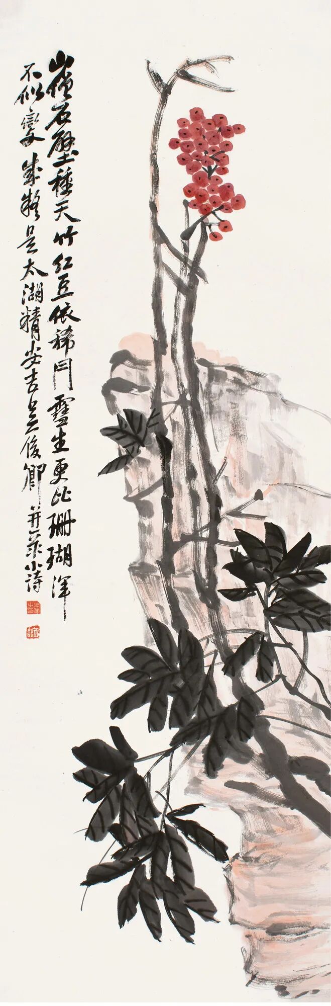 题识:山僧石壁种天竹,红豆依稀冒雪生。更比珊瑚浑不似,变成疑是太湖精。安吉吴俊卿并录小诗。