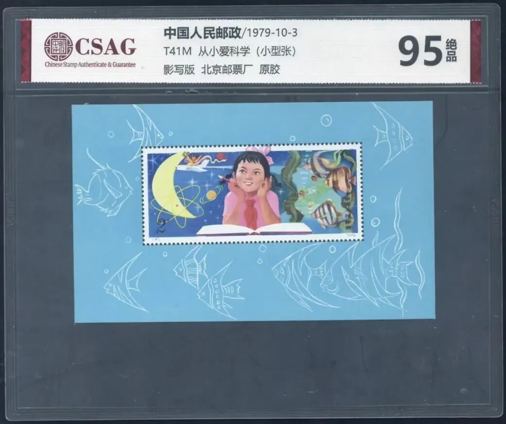 另外,早期JT型张同样“一票难求”。比如深受邮友喜爱的“大眼妹”——T41M《从小爱科学》小型张,全品相的价格在2022年年初不到8000元,而近日,赵涌在线平台上一枚源泰VF96全品以2.5万元成交,涨幅达3倍。