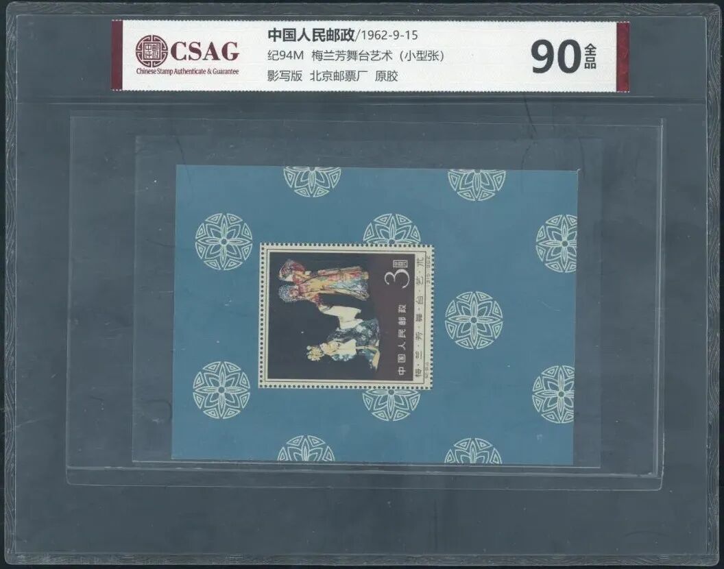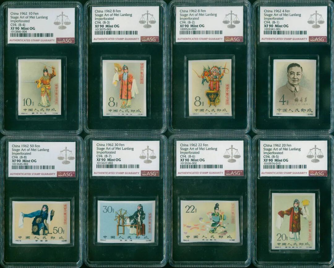 5月1日,上海华宇拍卖上拍的ASG 90 OG纪94《梅兰芳舞台艺术》无齿新一套的成交价高达52万元,而此前全品相裸票价格则在六七万元左右。
