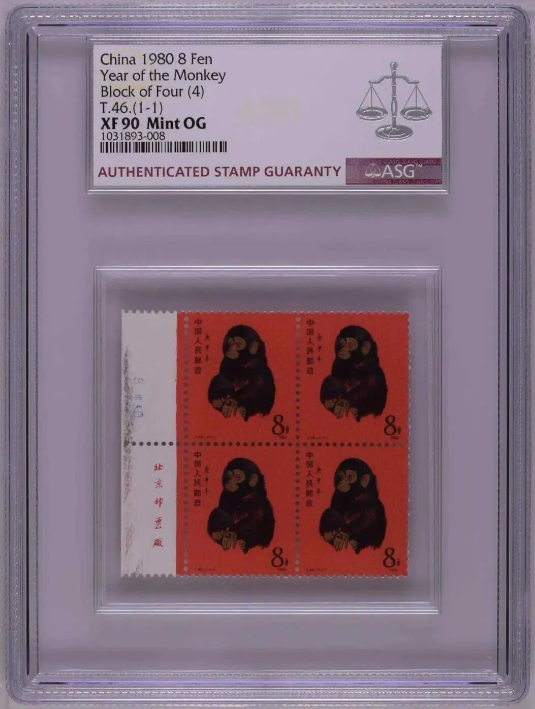 除此之外,JT票也涨幅明显。曾在中国邮市创造神话的T46《庚申年》邮票(俗称“猴票”),全品相裸票单枚价格一直在8000元左右。而5月24日,ASG 90 OG带厂铭的四方连“ 猴票”在上海华宇拍卖以7.8万元的成交价写下新纪录。