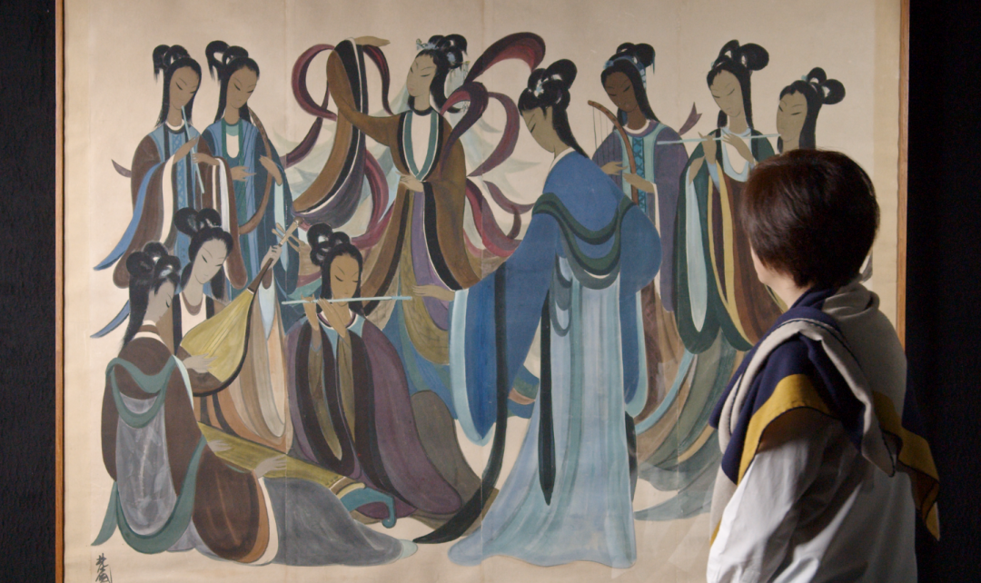 四幅之中,《敦煌伎乐》最为震撼,其为林风眠少见的“敦煌”系列作品中最成熟、最完整的一幅,该系列传世之作屈指可数,其中4幅已由上海中国画院永久典藏。