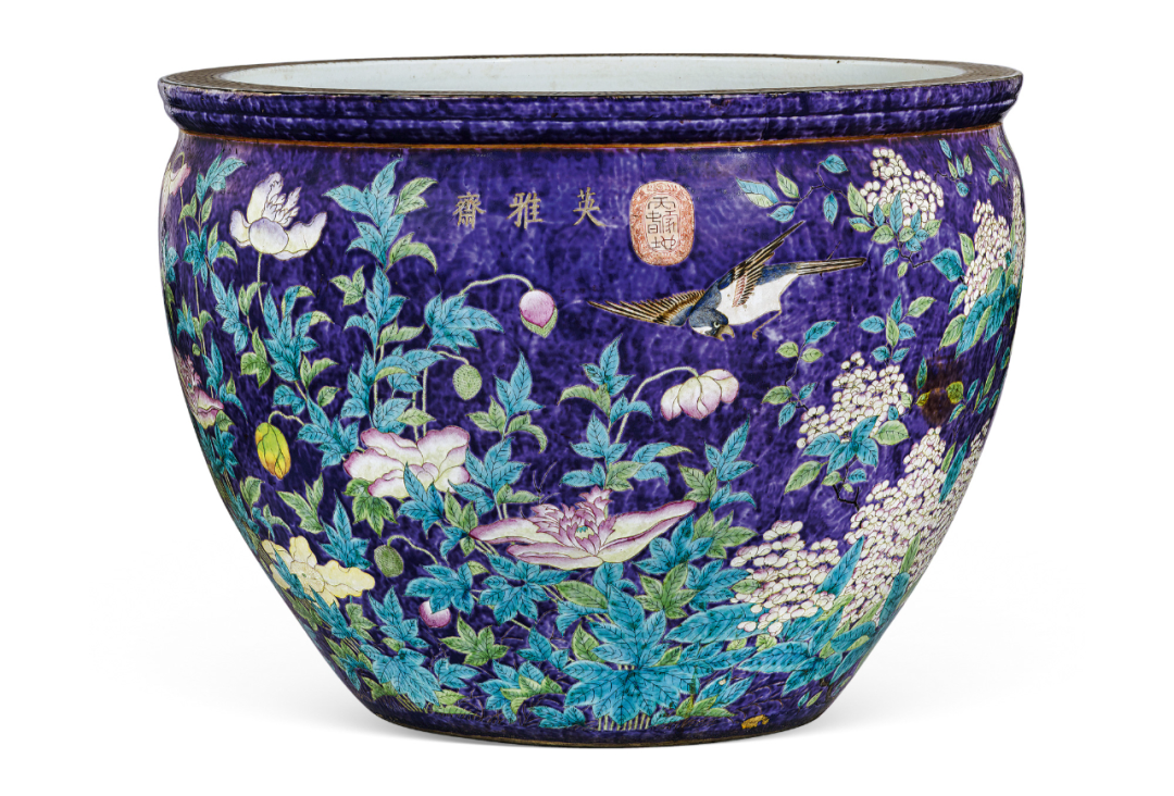 本年正值中国嘉德香港10周年,我们跳出常规、策划一场六月拍,推出各项大拍不常见的精致小品,备受各地藏家追捧,两天见证来自全球各地藏家的激烈竞投,网络竞投气氛炽热,参与竞买件数占比64%,两大专场佳绩频传,合共成交额达到2,061.24万港元,成交率78%。当中清光绪 紫地粉彩花鸟纹鱼缸由18万开始吸引了激烈的电话、现场、网上竞价,历时近10分钟,最终以110万港元落槌,加上佣金以132万港元成交,一举成为专场头魁,成为六月拍的最大亮点。