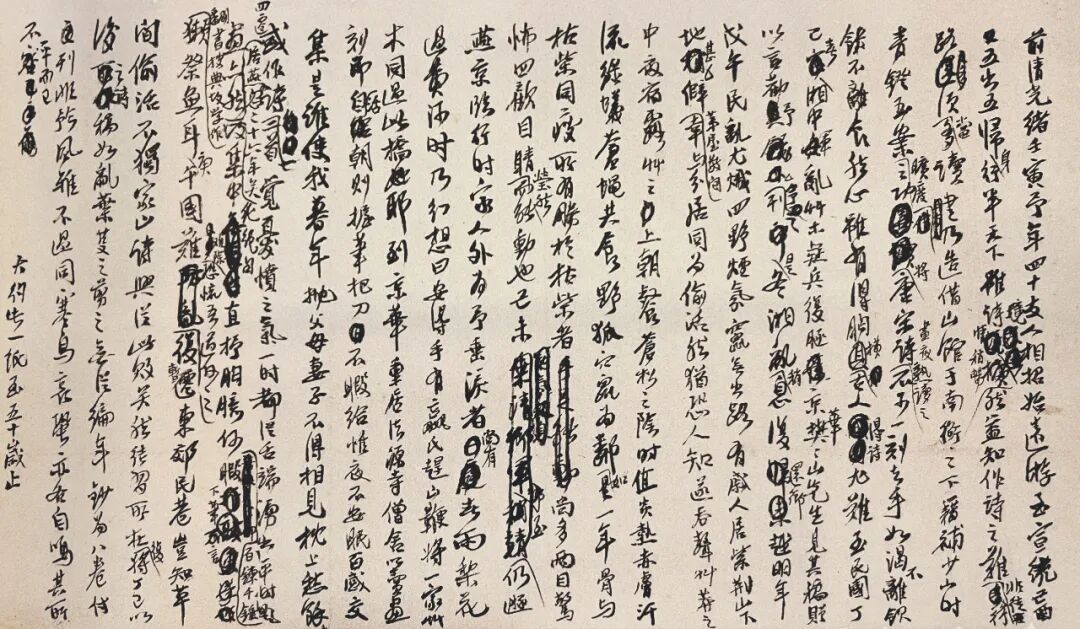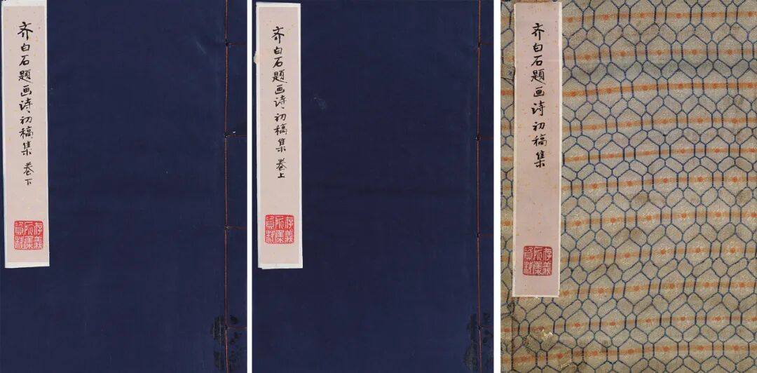 1. 本标的一函两册计60页,册内为白石老人亲撰题画诗近130首,内容大多数为白石老人自题画作之诗,亦有其题友人、门人画作之诗,又有篇幅记述其学艺、交游、授徒、处事之经历,忠实纪录了作者创作之过程、事世之往来,是研究齐白石诗文,考证其交游经历的重要文献。同时,两册洋洋洒洒数以千言,行笔顺畅自然,笔走龙蛇间圆转如意,老辣尽显。而遇诗思不畅、行文雍塞不如意时,便不假思索圈点更改,这是白石老人斟酌推敲之故,情绪流露,才情湛然。读之如晤白石,不忍释卷。