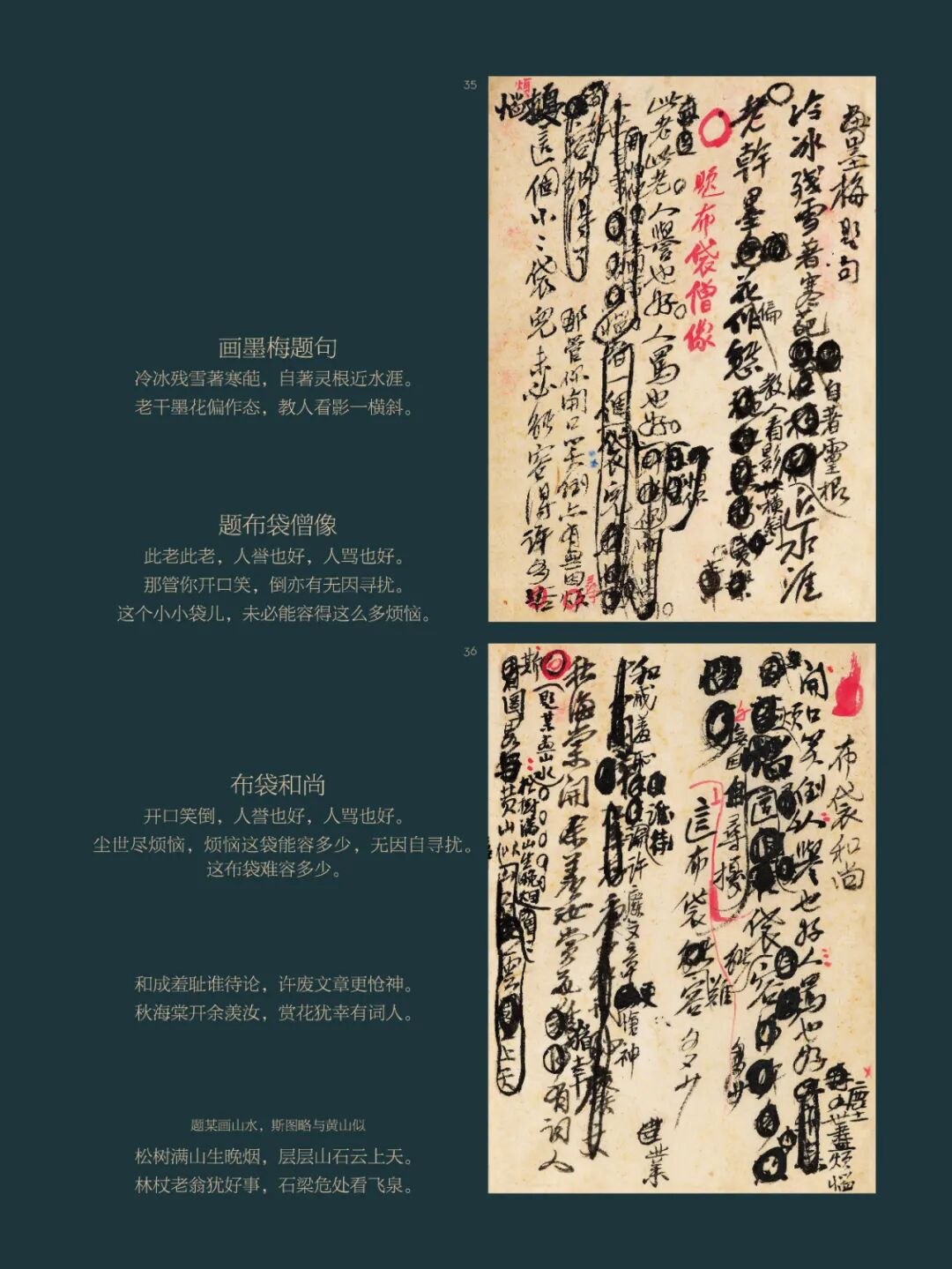 是册题画诗百又三十首,虽以“诗”名,然亦有文。这些题跋,非文即诗,浓缩了白石老人学艺、从艺、诗文、交游、授徒、处事等等方面。齐白石喜作并善作画题,有时一画两题、三题或数题,题款的位置在书画作品中变幻无穷,称得上集古代题款艺术之大成。而且养成了题跋书画、篆刻、简册的习惯。从其大量题跋中,可以清楚地看到齐白石作画时的喜怒哀乐和酸甜苦辣,可以清晰地听到齐白石的人生感慨和独特见解,可以具体感触到齐白石脉搏的律动和旺盛的活力,从而发现齐白石艺术逐步衍化发展的步履,进而把握其艺术思想渐次变异拓展的轨迹。