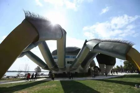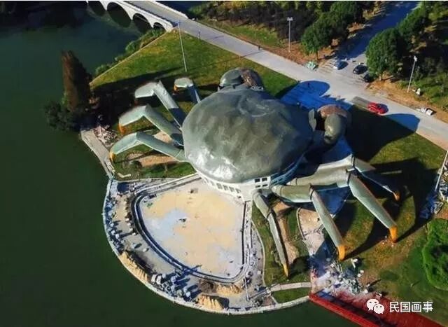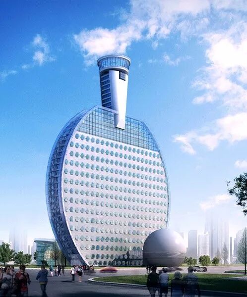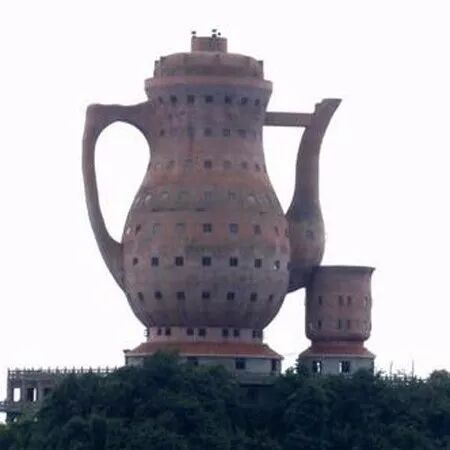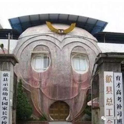 洒家不但不太懂蟹腿在建筑学里算是什么构造,更是生平第一次见到建筑上安装腿毛的行为。这只大闸蟹是2017年新鲜出炉的,2017年啊!没想到吧,2017年还有这样的审美。往前追溯的雷人建筑,只有你想不到,没有他们造不了。福禄寿三位神仙大概是从年画上原比例放大的,2D变3D,极具视觉冲击力。它凭借极富人文精神的设计,逼真的造型,成功入选第一届“中国十大丑陋建筑评选”。我看到之后简直没有办法评价,本能地打出一串哈哈哈哈哈哈。湖北稻花香酒厂看了之后,激动地直拍大腿,赶紧也造了一个......看到大楼远景,就仿佛已经喝了二两,醉醉的......不知道这是设计师的创意,还是甲方的诉求,这种创意,就像仓颉造字一样,只有采取象形大法,才是“名副其实”。太低估开发商和设计师的野心了,他们要建一套,还有篮球、足球、排球......但我有点不敢靠近,感觉狙击手正在方孔里暗中观察,随时准备干掉我。很多东西丑,主要是因为当代色彩审美问题令人一言难尽。要表现民间文化艺术的活力,完全不用搞得这么五彩斑斓,真的。这些丑到逆天,或者山寨奇葩的建筑,也不能全甩锅给建筑师。