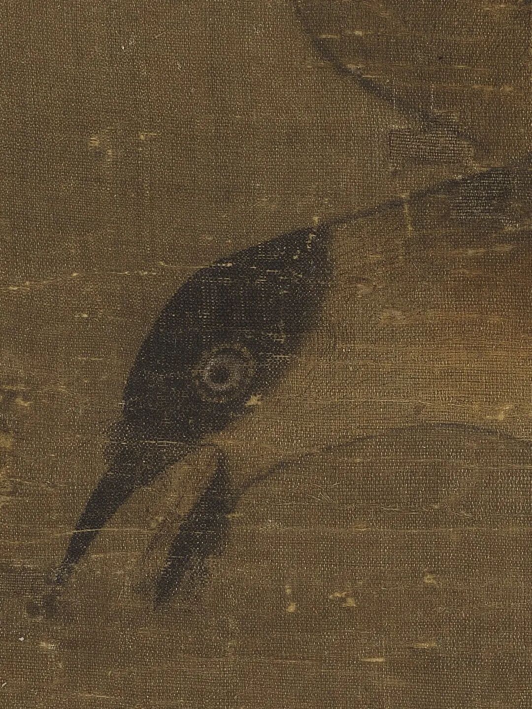 他不同于其他画师极力展现花鸟完美的状态,将其刻画的完美无瑕;而是将注意力聚焦于枯蓬秋叶,以花木的衰朽之美反衬生命的顽强与天然。有关崔白传世的画作,如今以趋近全景的大幅花鸟画最为卓著,不同于折枝花鸟的小景,崔白的画面以趋近山水画的格局与构图,展现出充满魄力、意态传神的撼人画面。