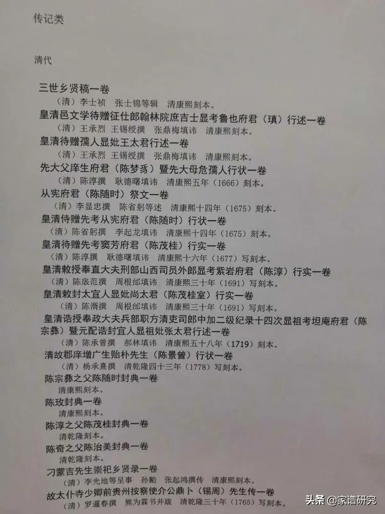 又,林则徐之父林宾日的《皇清岁贡士例诰封通奉大夫江宁布政使显考晹谷府君(林宾日)行状》,与徐光启并称为“南徐北王”之王徵家族的《三世乡贤稿》,“天津教案”关键人物刘杰的《皇清诰授中宪大夫显考彦三府君(刘杰)行述》,涉及众多名人的《蓝菊荪自订年表提要》等价值皆巨。而冀州进士陈宗彝、陈淳之的陈氏家族的系列文献保存较完亦为罕见之例。