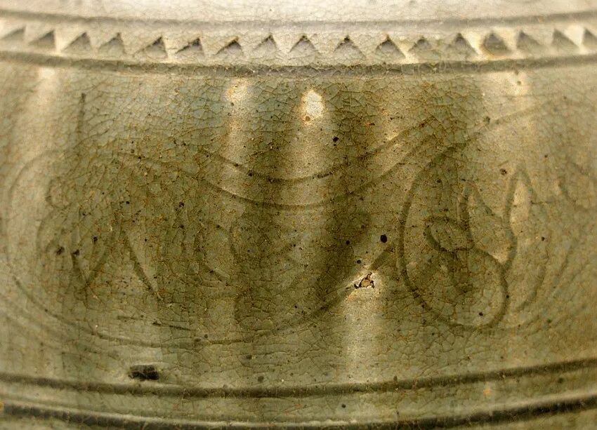 二、隋代青瓷胎体坚硬,灰青,颜色比较浅。由于工艺水平的提高,南北朝时期青瓷胎体中含粗大沙粒的现象减少很多,胎体中起泡、窑裂、歪扭变形的现象基本看不到。