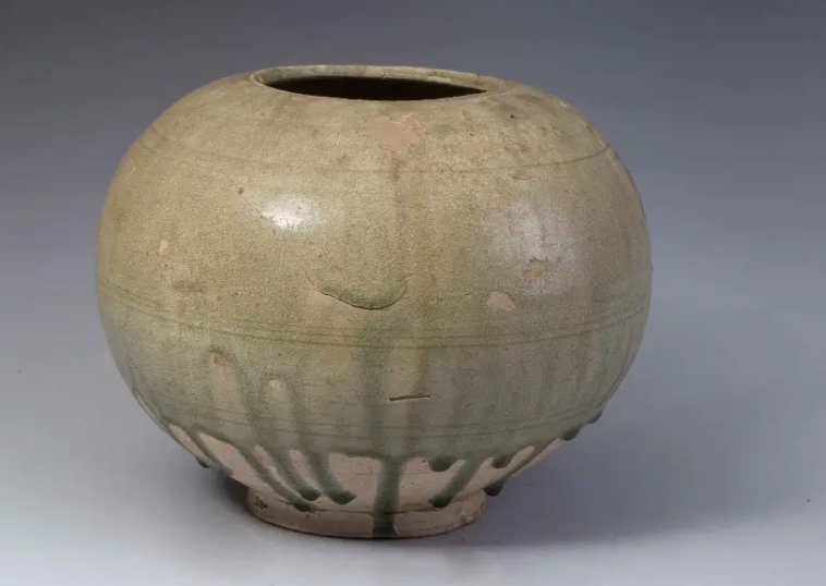 当时的釉质有的泛灰,有的泛黄,比较凝厚,有流釉现象,一般器物施釉前上化妆土,有的不上化妆土,施釉注意盖口、颈、肩和上腹部,中下腹至底露胎,流釉成蜡泪。