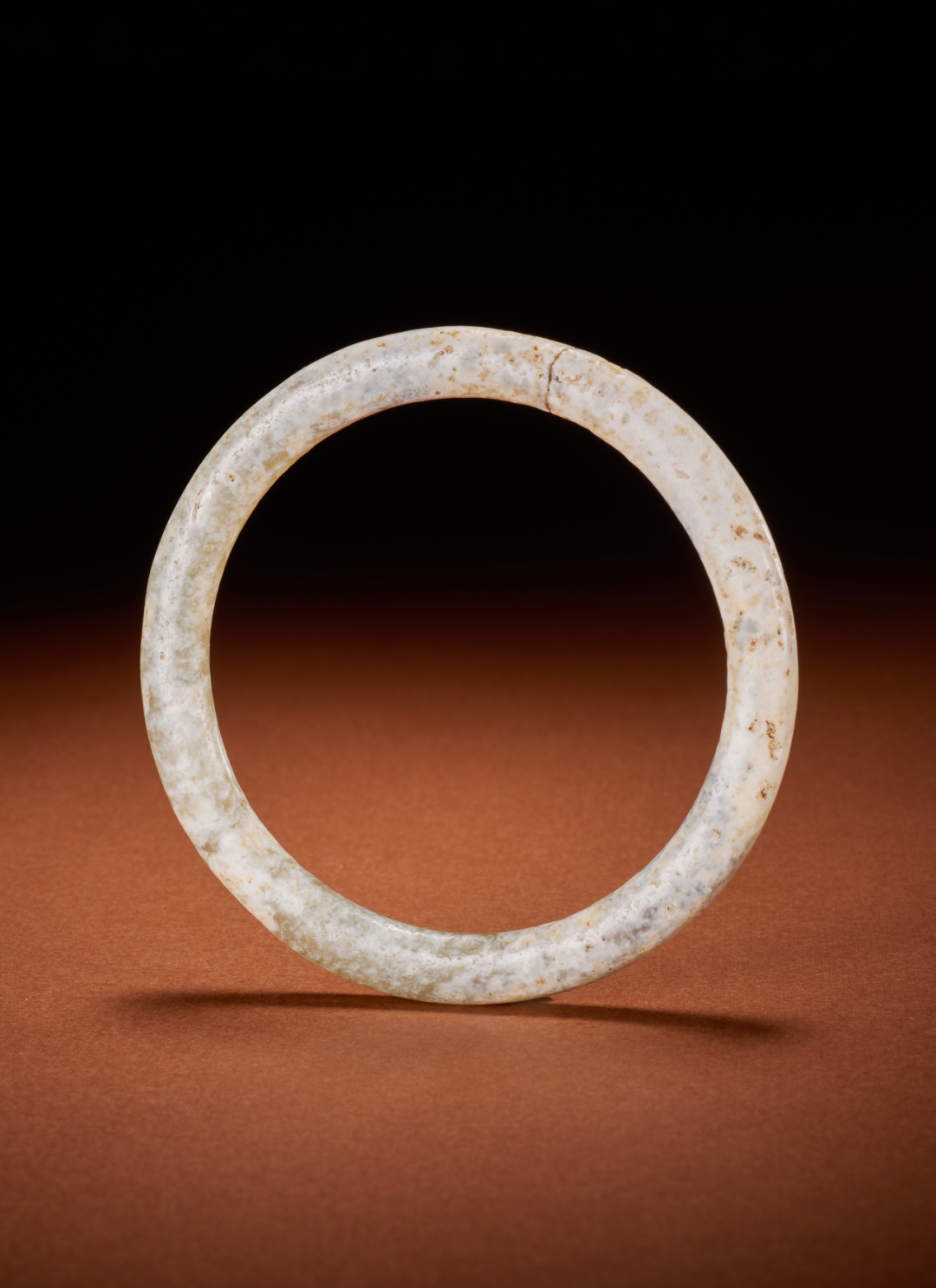 玉环旧玉质,细腻润泽,环体较薄,造型精致典雅、古朴大气,可作为收藏把玩、佩戴装饰。