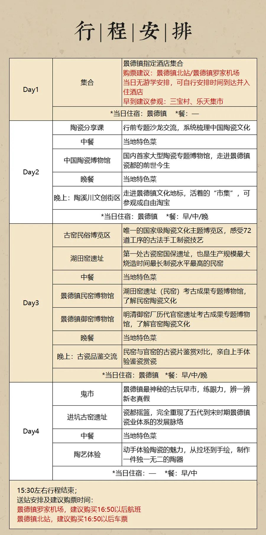 线路由深耕文化游学5年的资深团队精心设计,讲座与游学点探访结合、学习与实操体验相结合、古今对比相结合,全方位感受景德镇陶瓷文化。