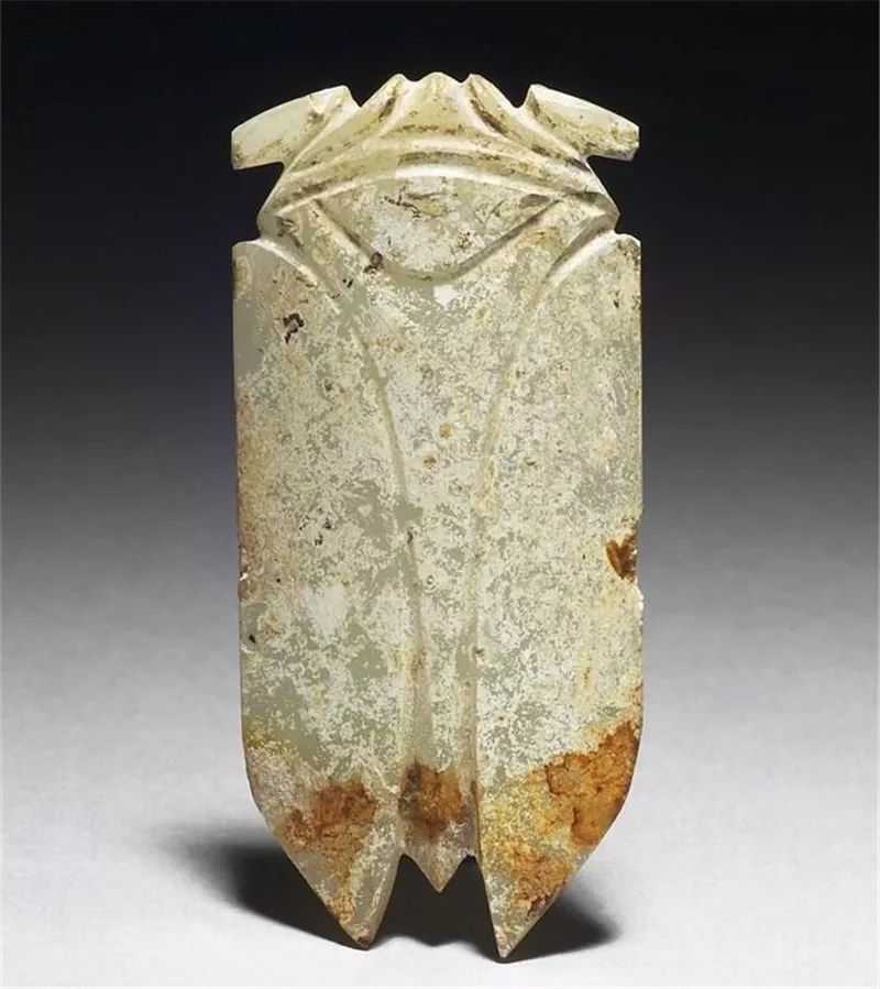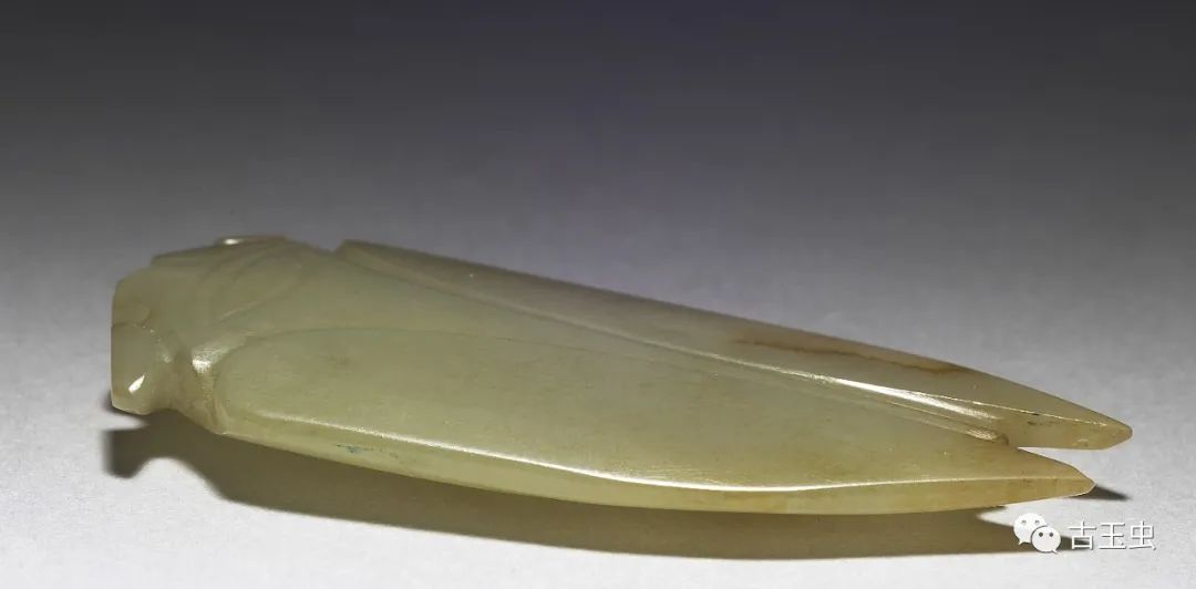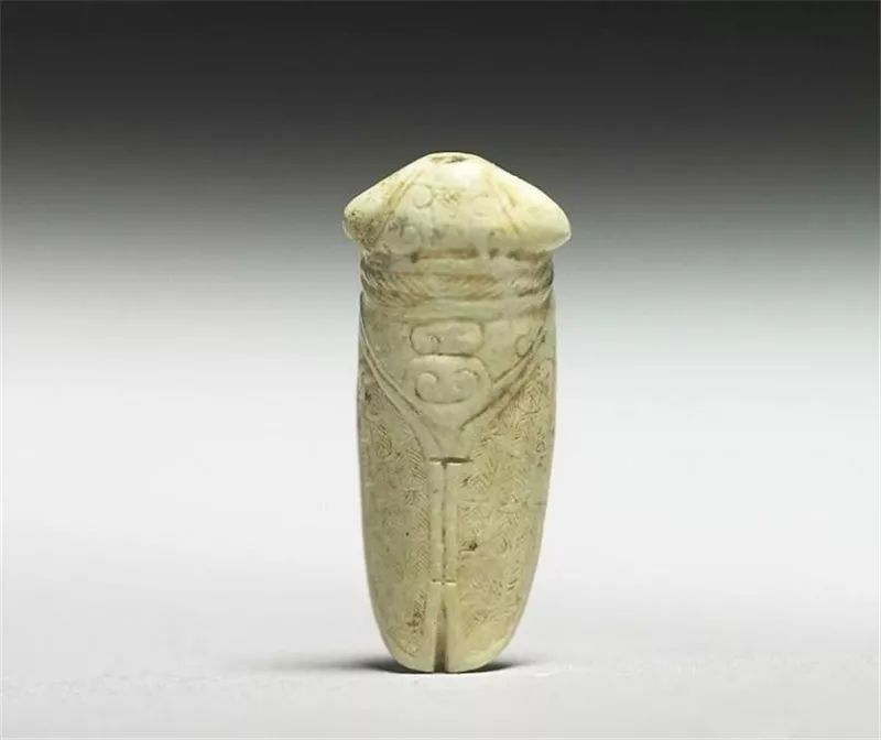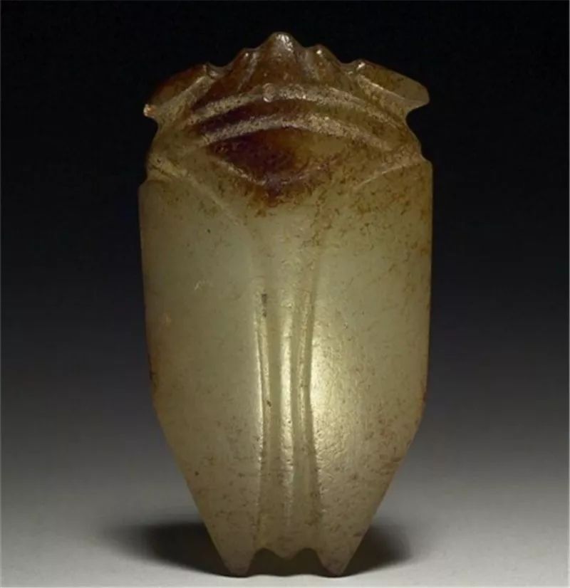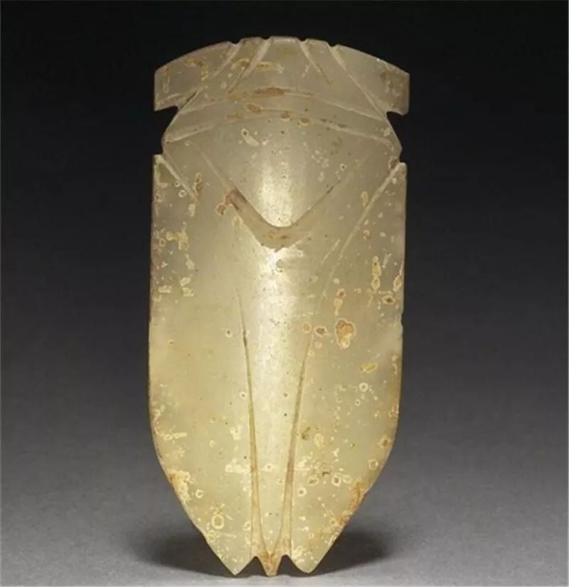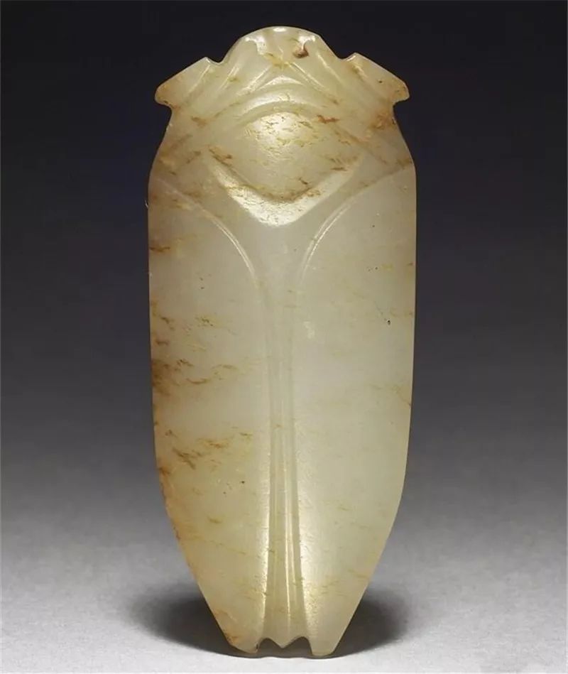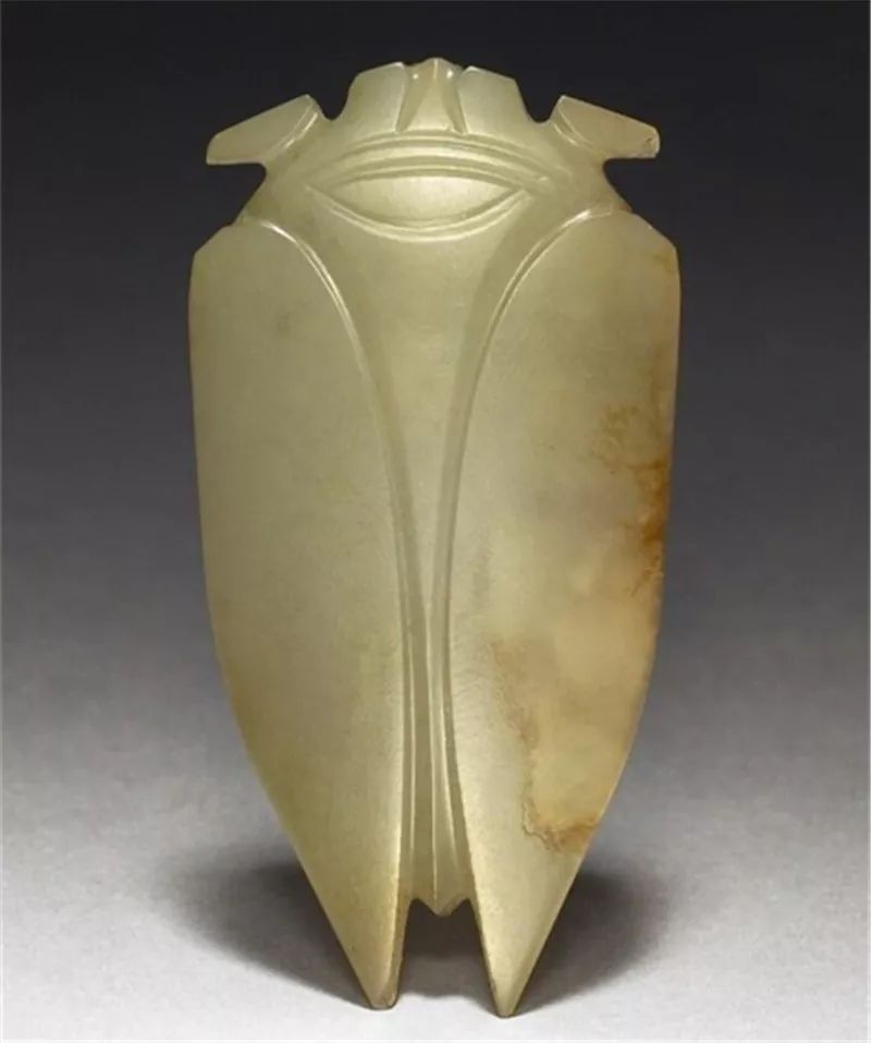 玉蝉盛行于西汉晚期至东汉,多用作敛葬中含玉,放置于死者口中,取其清高绝俗,复活再生的意义。