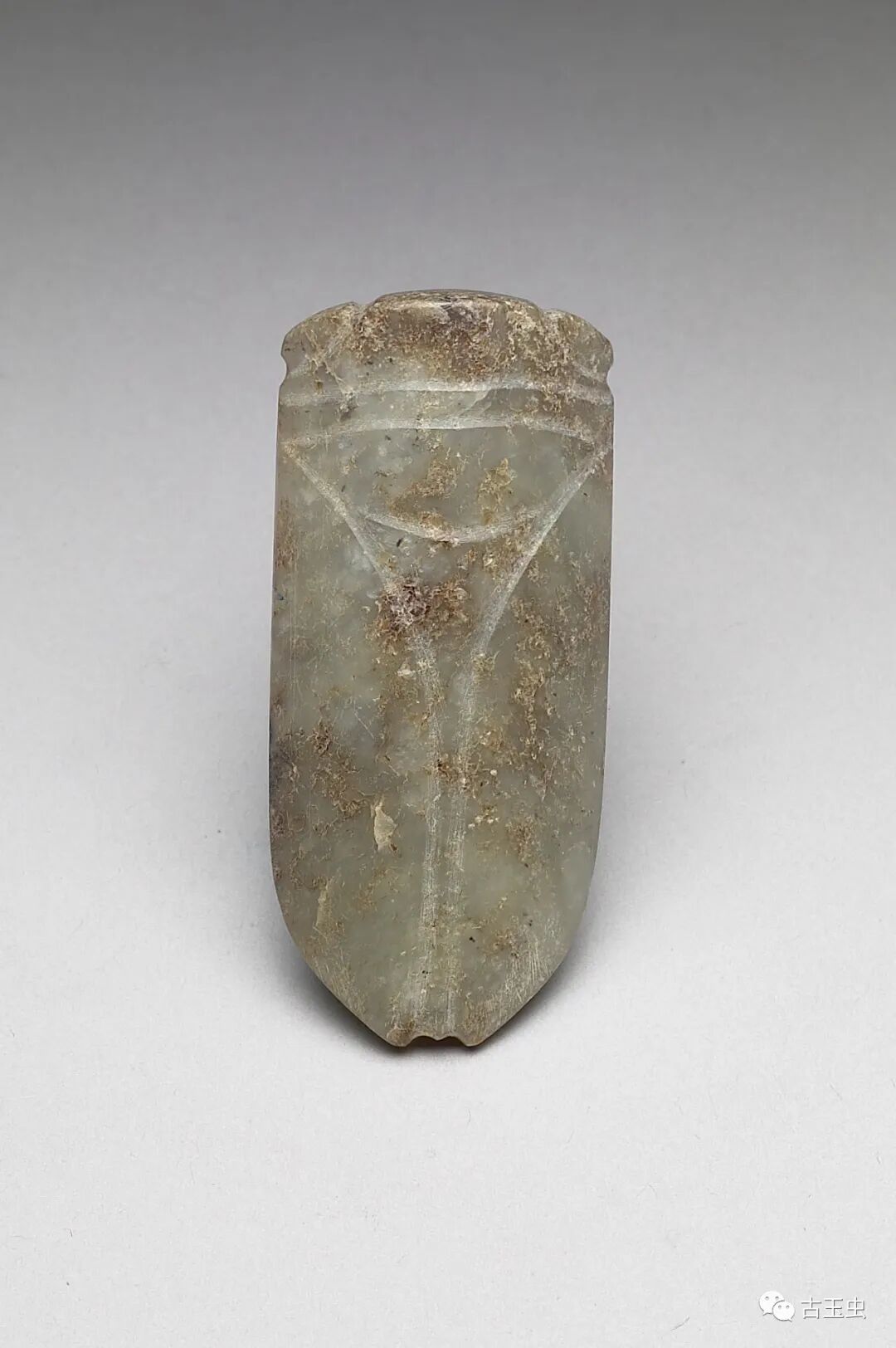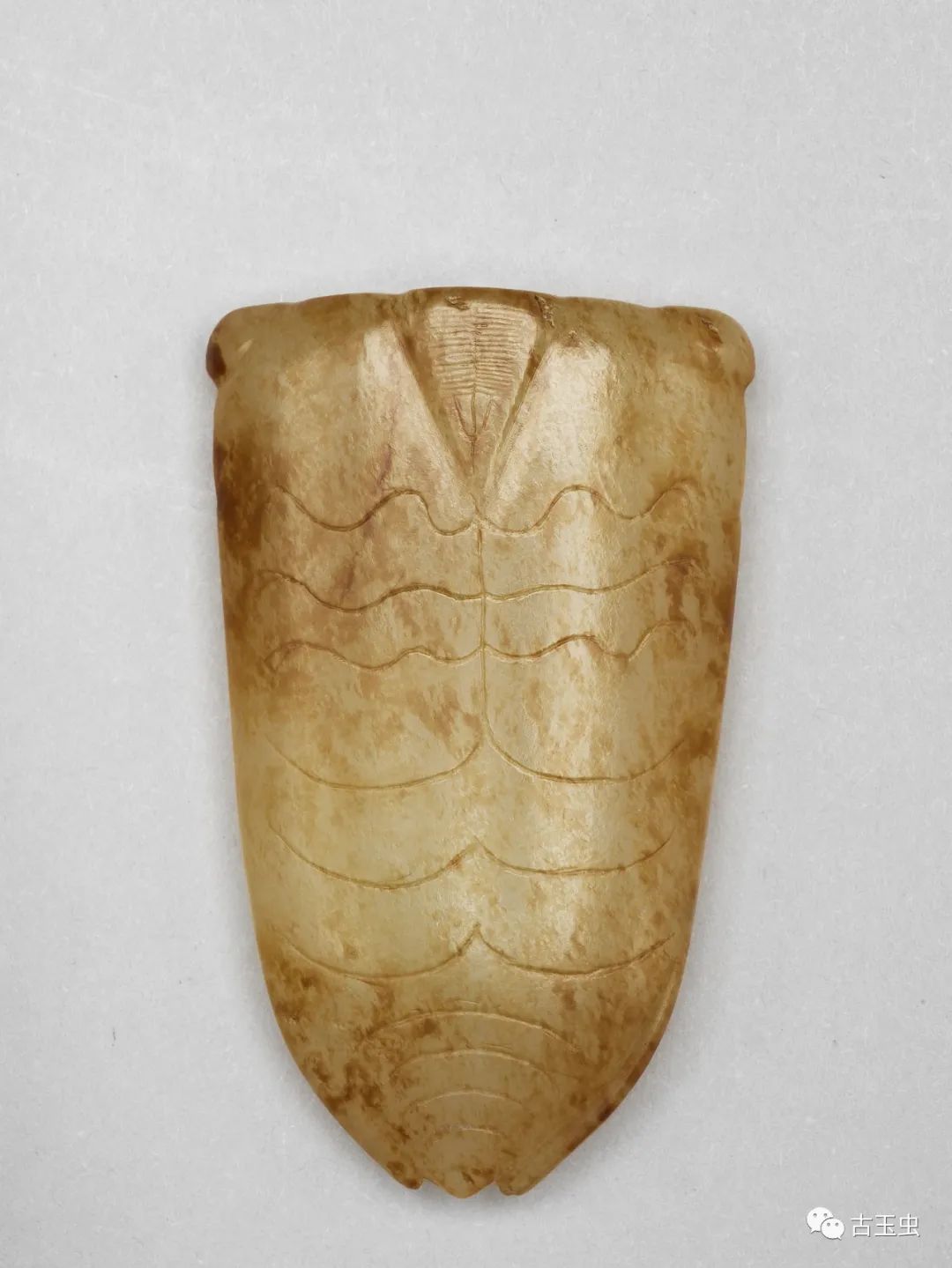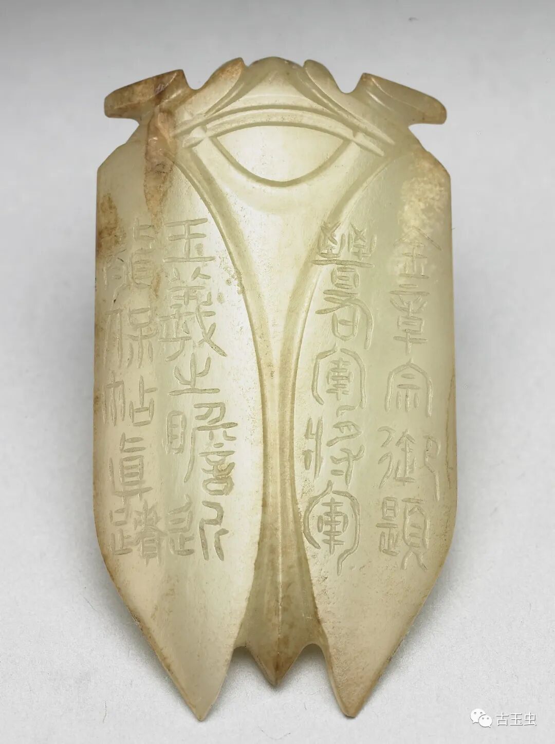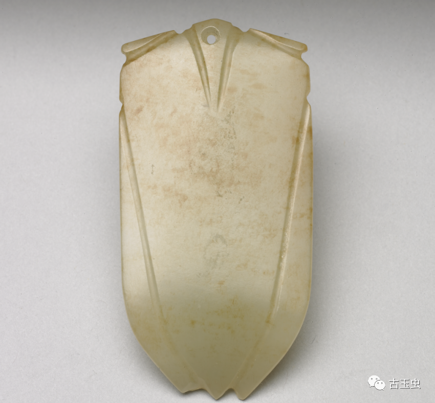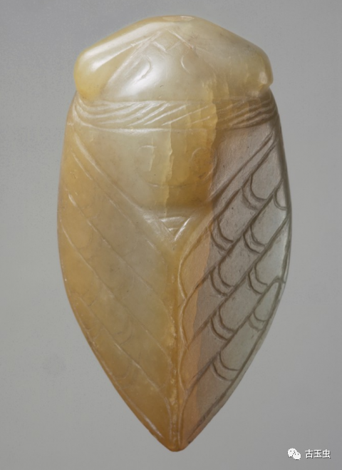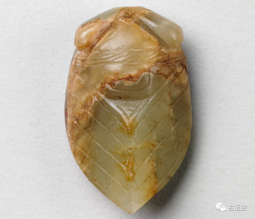 玉蝉盛行于西汉晚期至东汉,多用作敛葬中含玉,放置于死者口中,取其清高绝俗,复活再生的意义。