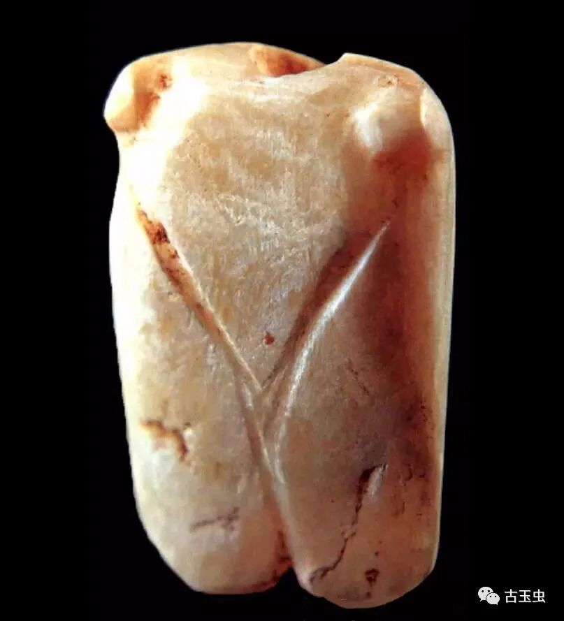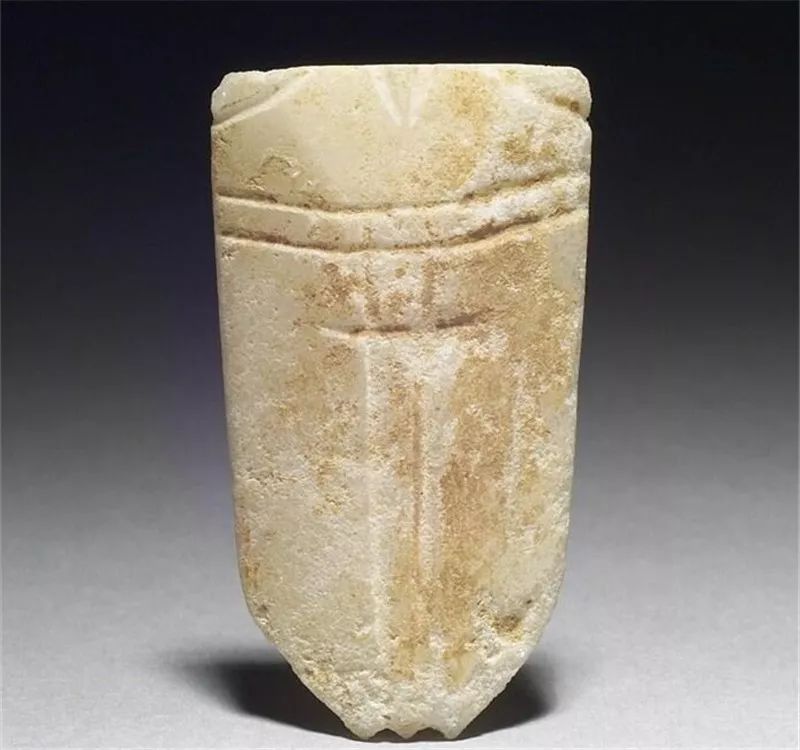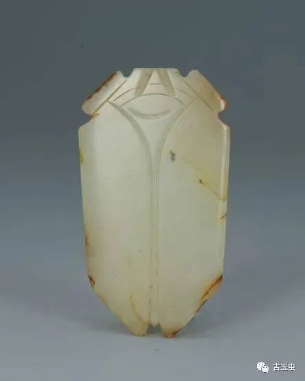 玉蝉最早出现于新石器时代,至商代大量出现。商代玉蝉用于日常佩戴,贵族佩戴玉蝉,表示高洁。此时玉蝉形制古朴,蝉头眼大,身翼窄小成细长倒梯形;头部中央有孔,用来穿绳。蝉身用阴线刻划象征身体部位,纹饰简单。