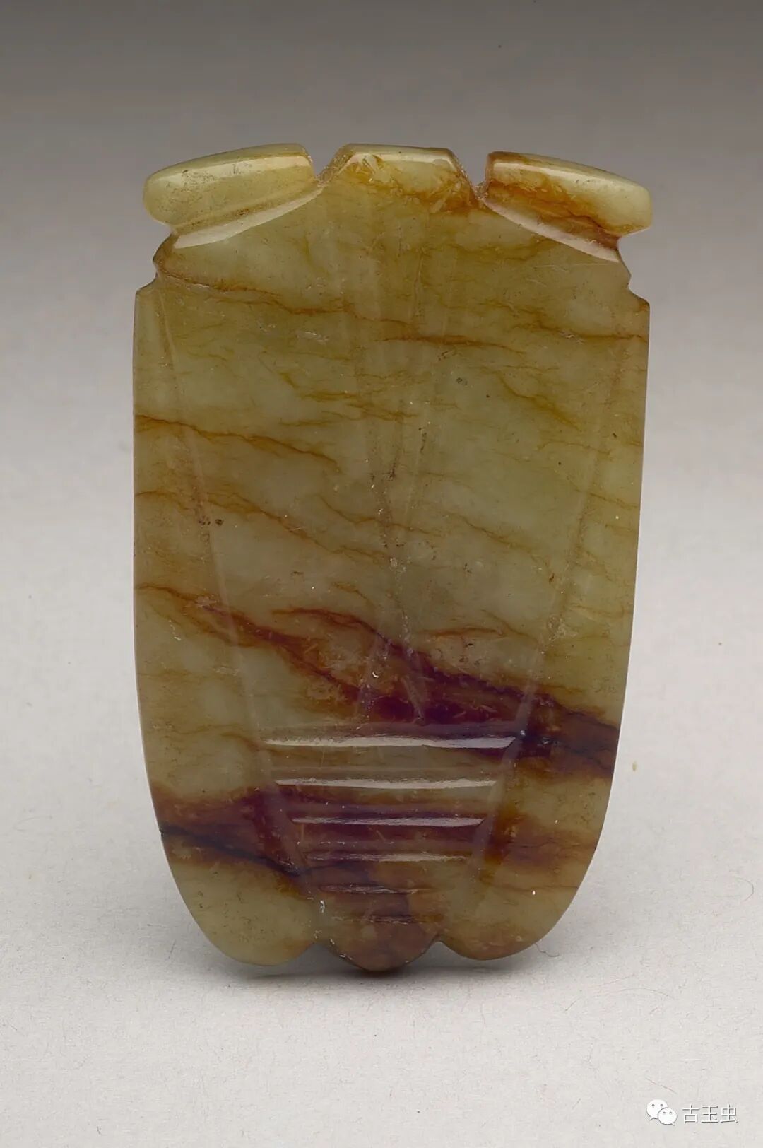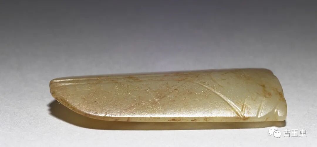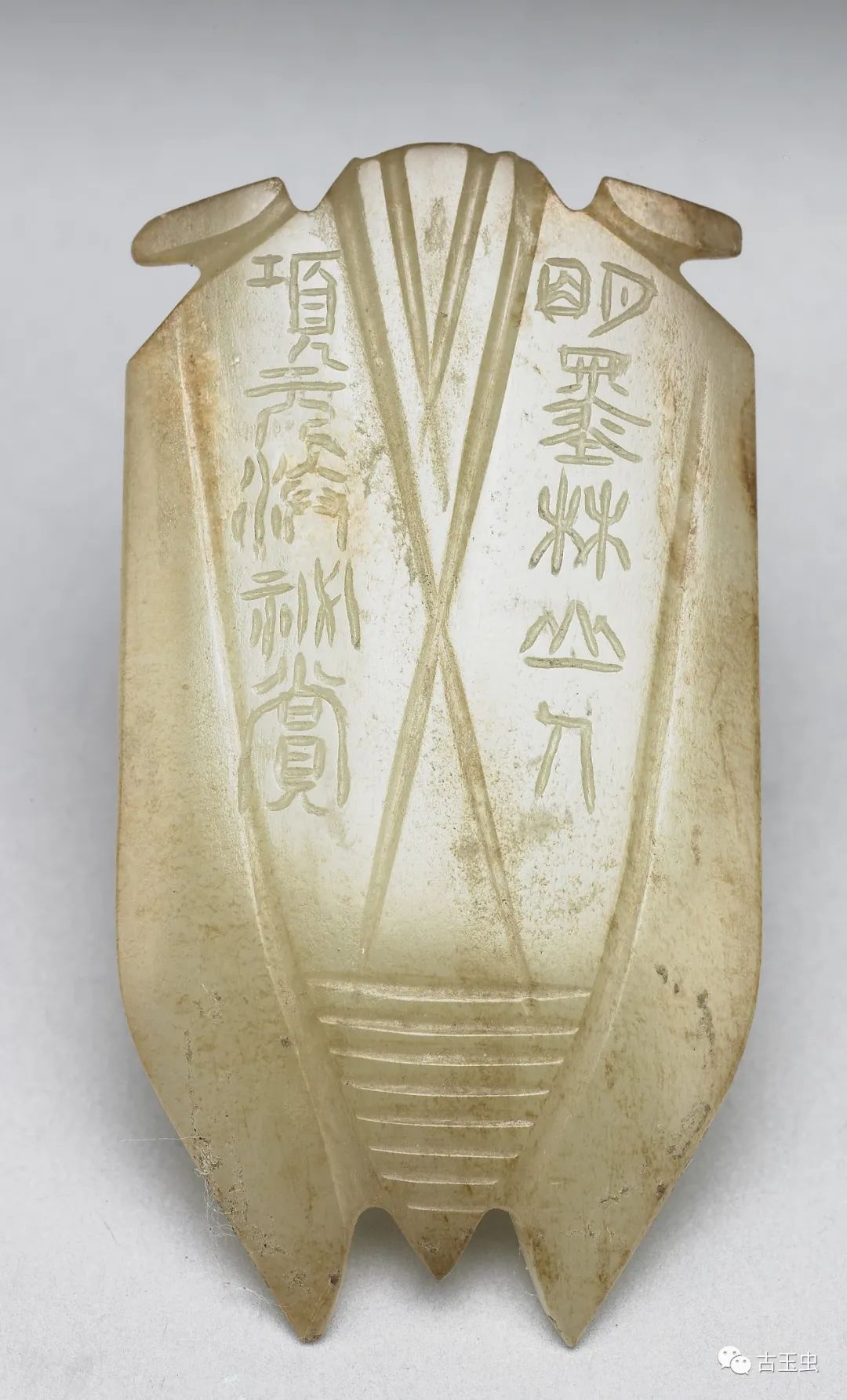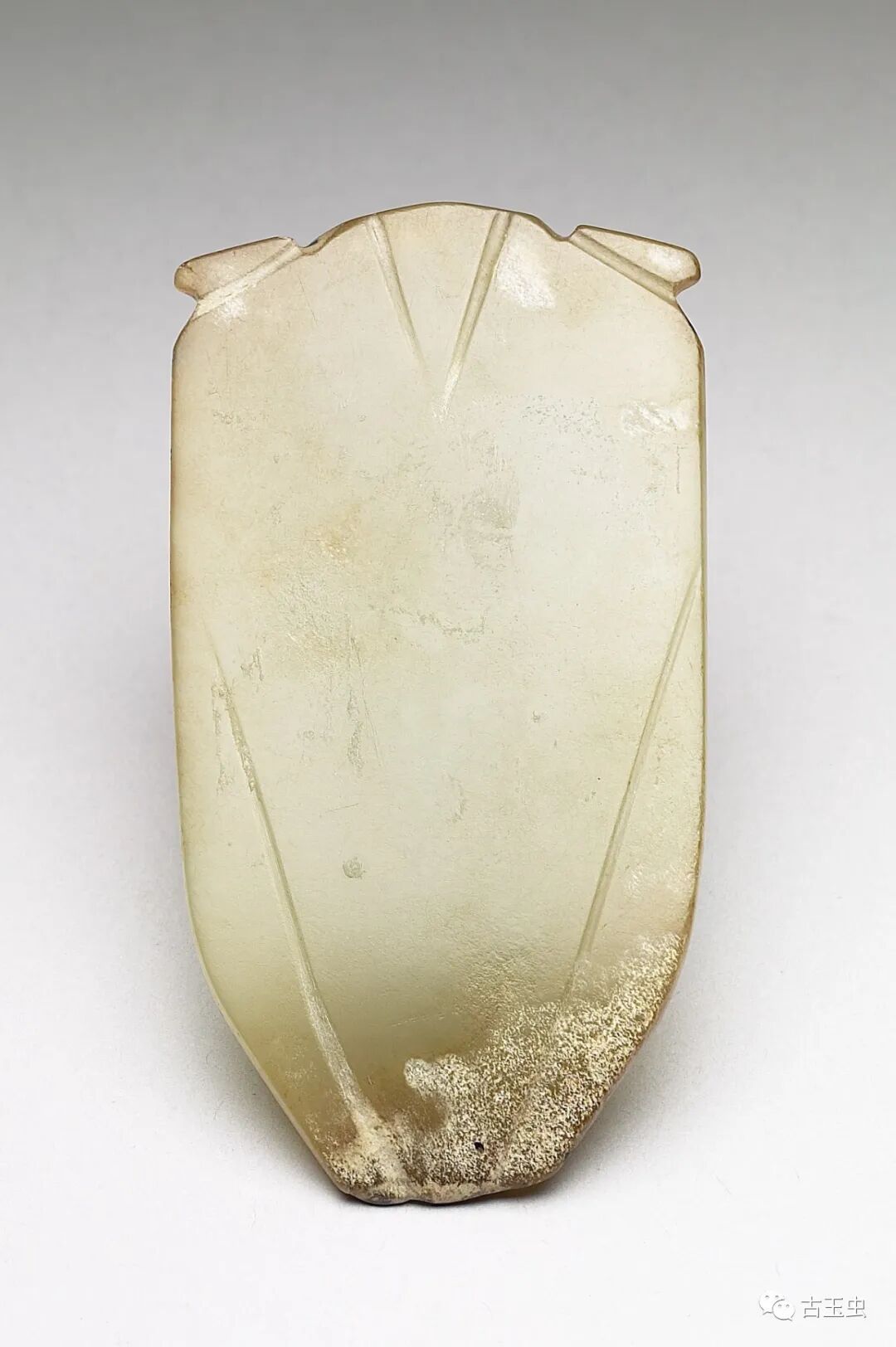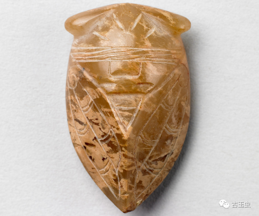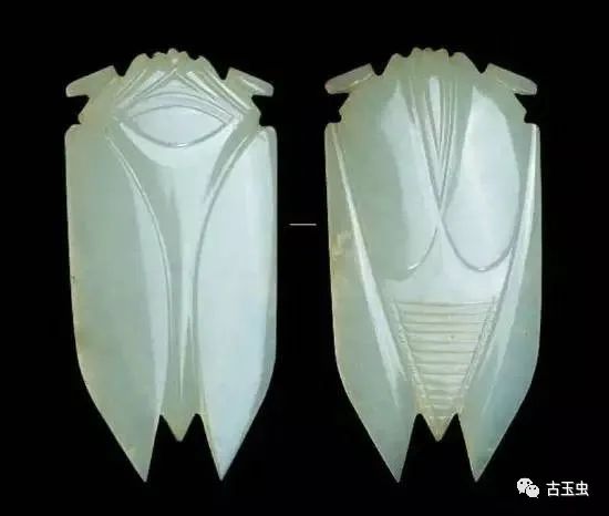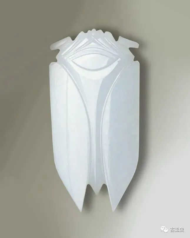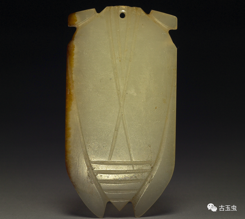 秦汉玉蝉,线条简练,以直线为多,琢磨平整,锋芒锐利,刀法粗犷有力,故有“汉八刀”之称。其后历代所制玉蝉,与之相差甚远。