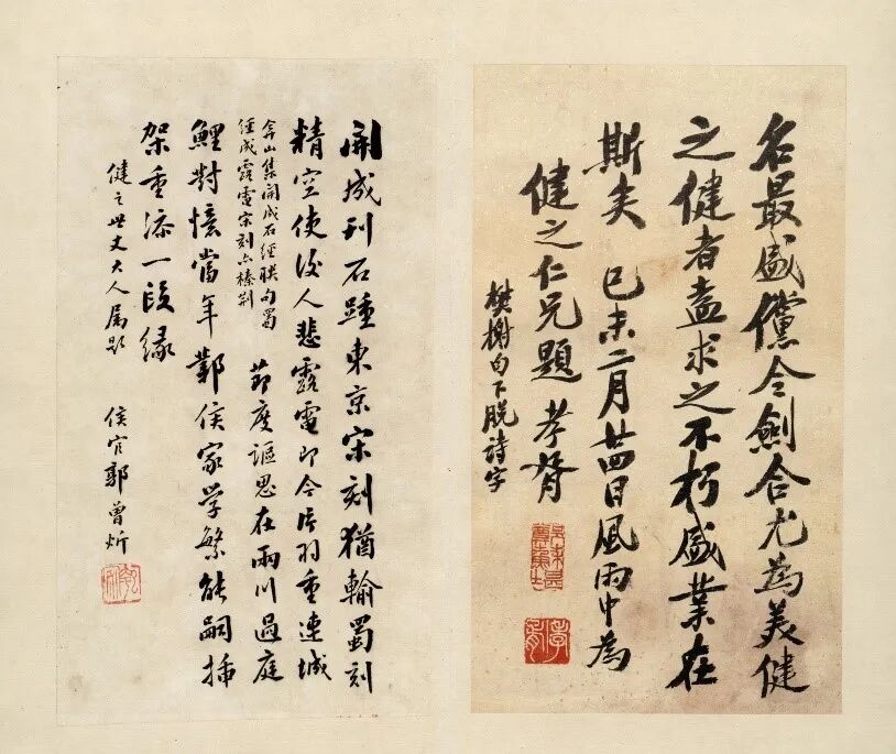 政权交迭看似并无剧烈动荡,旧朝廷延宕时日不肯逊位,却只是斤斤于优待条件,这讨价还价的嘴脸和行为着实让“忠义之士”如郑孝胥感到无比尴尬,即使他立定决心要做遗民,对此“故国”又实在不免羞愤,夹在新旧之间,一时择处竟然显得有些两难。“海上留遗迹”的二帝宁死不辱,为王朝和臣民保存了尊严,这才是郑孝胥心中遗民效忠对象的完美典范。很明显,郑孝胥并不认为这方甚或带有“不祥”意味的印玺值得刘体智“哀歌气填胸”,即使如此,他也仍在诗中流露自己的伤感,只不过伤“时”的成分远过于伤“史”,收束两句更让此诗此情增添了些许貌似激越贞坚的意味:发生于酝酿题咏瀛国公印期间的丁巳复辟,已如闹剧般仅上演十二天便草草收场,“少康灭有穷”固然是一段信史,但在负气行强而欲挥戈回日的郑孝胥这里,注定只能成为一份憧憬而已。当郑孝胥再次遇见这类触动自己敏感神经的特殊古物,是在十一年后的栩楼雅集上。1928年,栩楼主人郭则沄(1882—1946)邀约同道“各携所藏金石书画,共评赏之”[35],席间最吸引人们目光的,便是郭氏自藏文天祥蝉腹砚和章钰(1864—1937)带至现场的黄道周断碑砚。文天祥砚上尚有同为宋遗民的谢翱题铭,黄道周砚则由苏轼墨妙亭诗碑残块所制,两物原是乾嘉间骈文大家曾燠旧藏名品,以往诗家多有吟咏,百年之间散而复聚,可谓金石缘深。郑孝胥触抚最受后世景仰的两位宋明遗民手泽,内心起伏,不能不赋句寄遣:入春转寒雪弥日,杯酒端宜试诗笔。