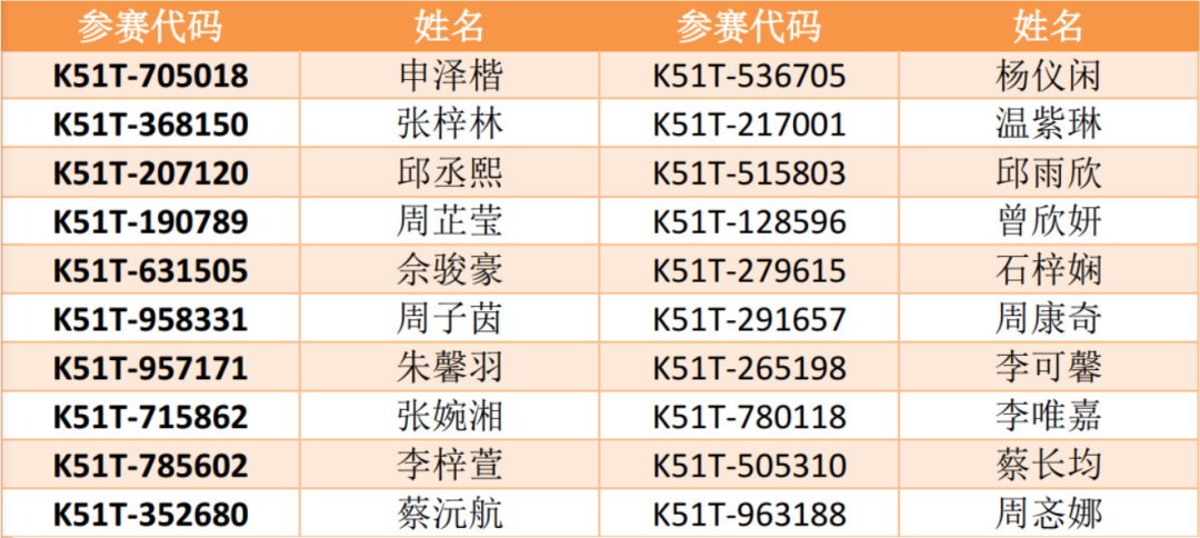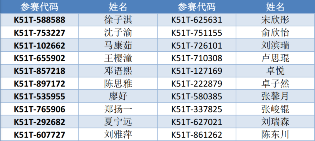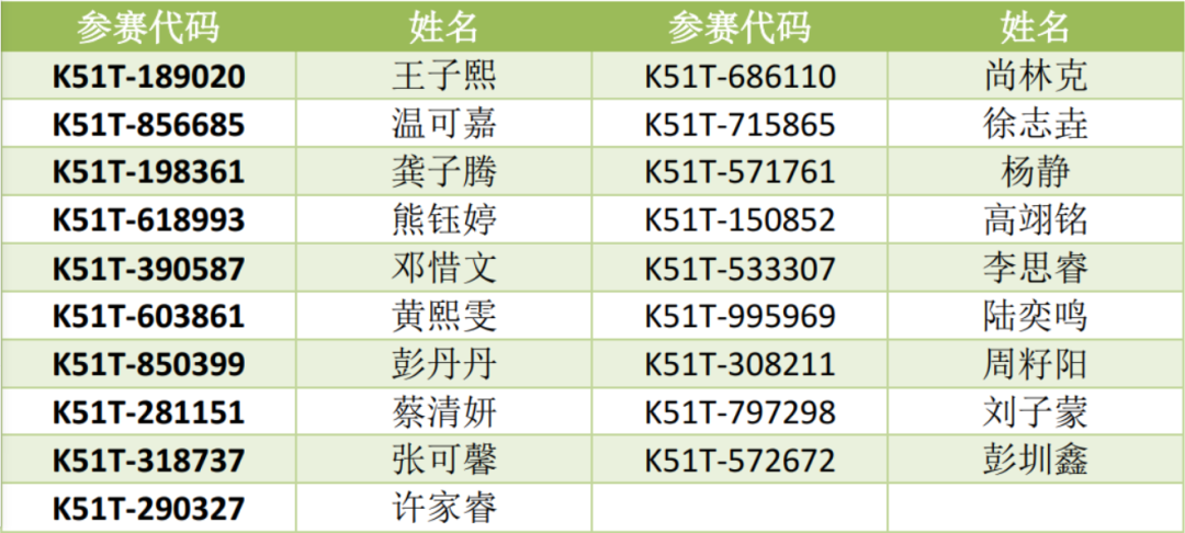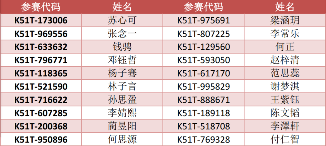 1. 参赛选手需在规定的时间内进行检录,检录时请出示身份证原件和地区决赛参赛确认表,配合工作人员进行身份验证,检录后由工作人员引导在规定区域候场。因自身原因无法按时完成检录,视为自动放弃比赛资格;