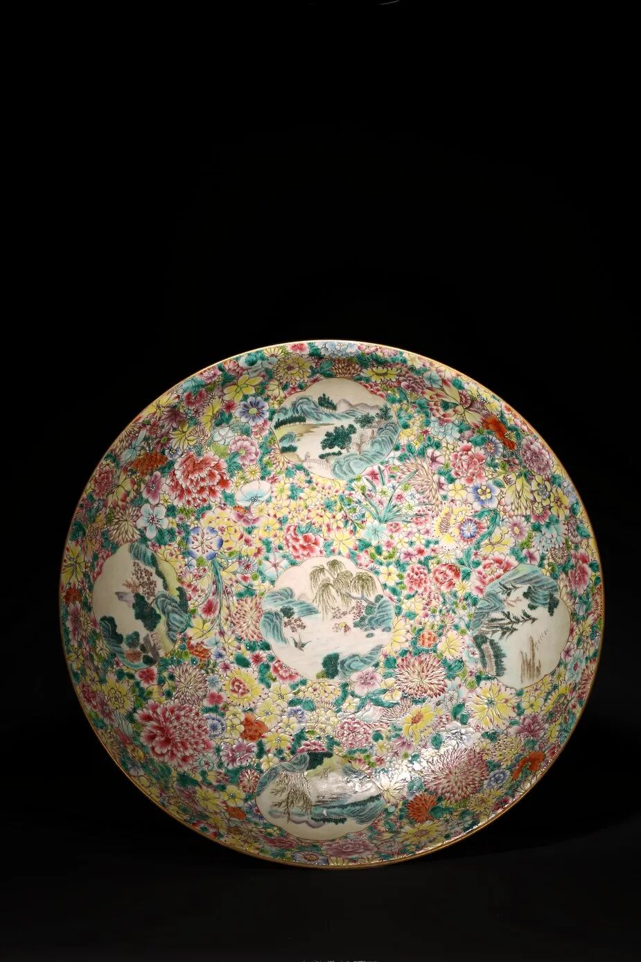 Lot 5134 清 粉彩百花不落地山水纹大盘