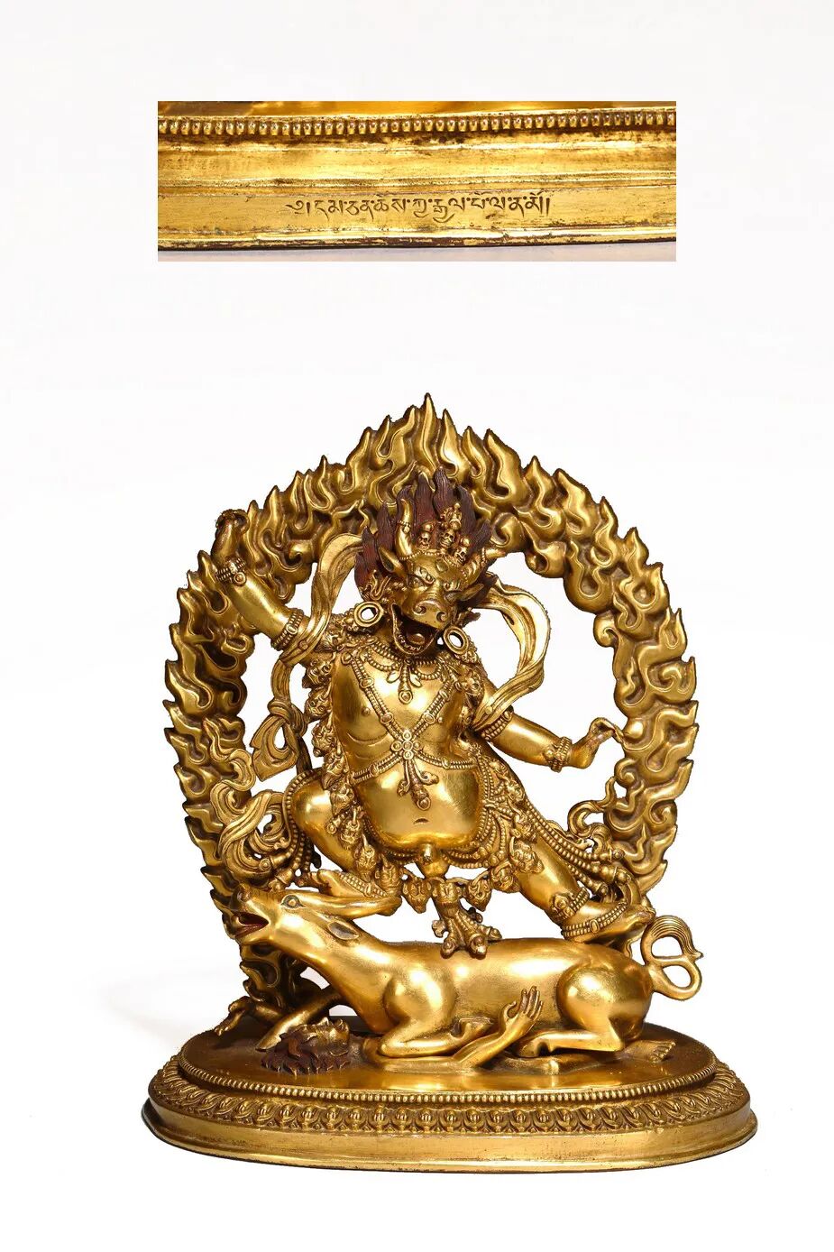 参阅:可比较一尊同一时期,背光相似之铜鎏金大威德像,售于纽约苏富比,2007年9月,Lot 57