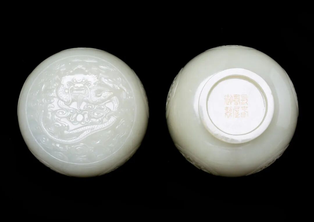 Lot 5091 清乾隆 长春书屋款 白玉云龙纹盖盒