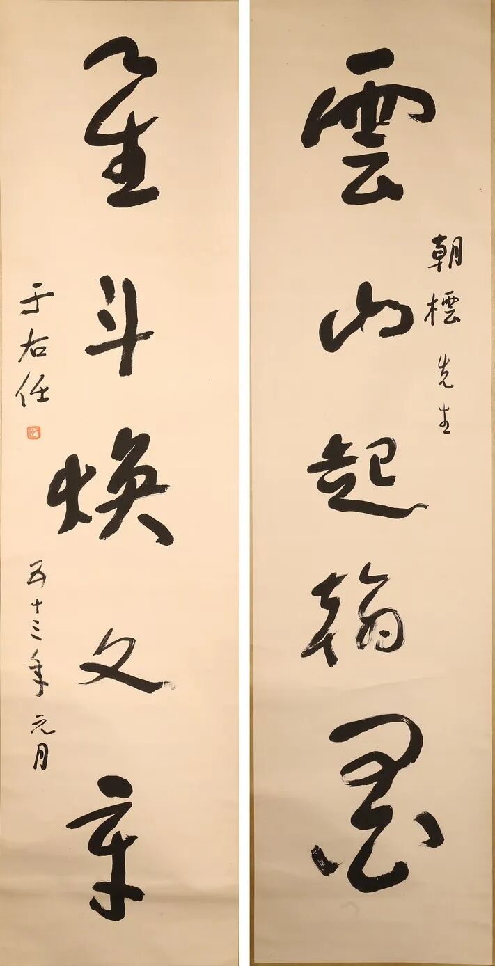 Lot 5284 于右任 书法五言联 纸本 立轴