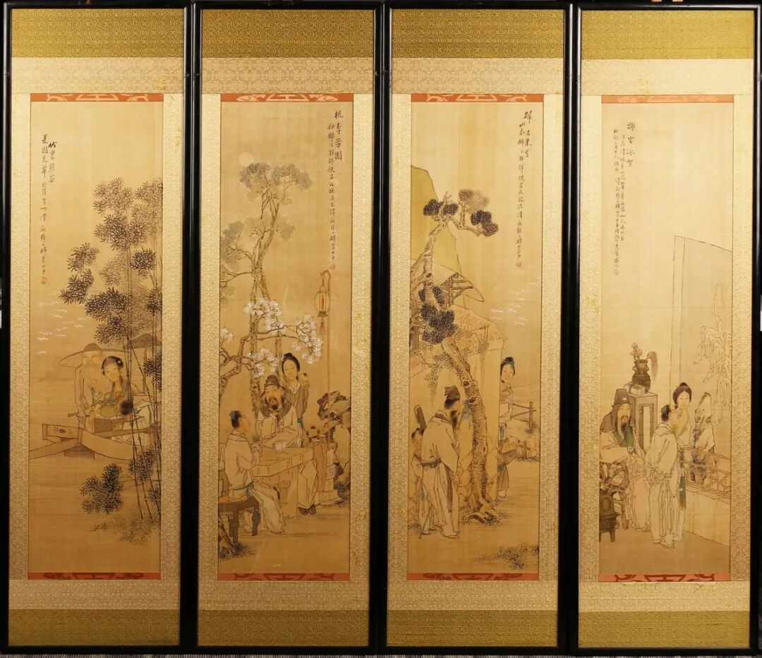 设色绢本 四屏